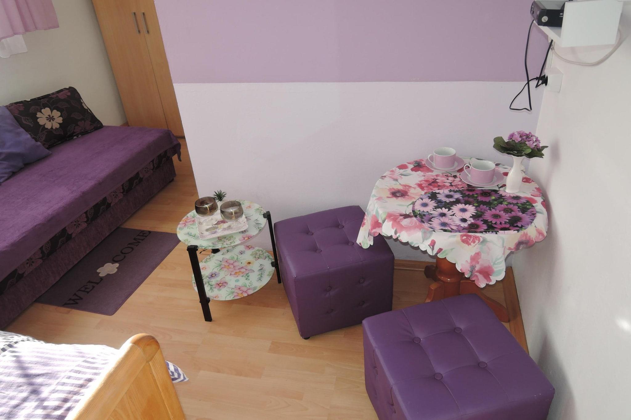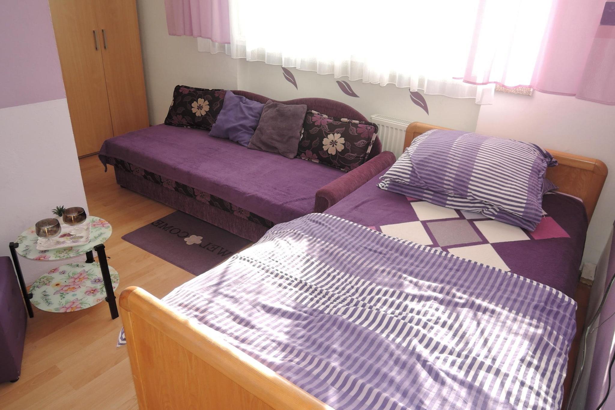 På 1. etage: (Stue/soveværelse(enkeltseng, enkeltsovesofa, Fjernsyn(Tyske TV-kanaler), elkedel), badeværelse(bruser, håndvask, toilet)) Internetadgang, terrasse(deles med andre gæster, 25 m2), parkering