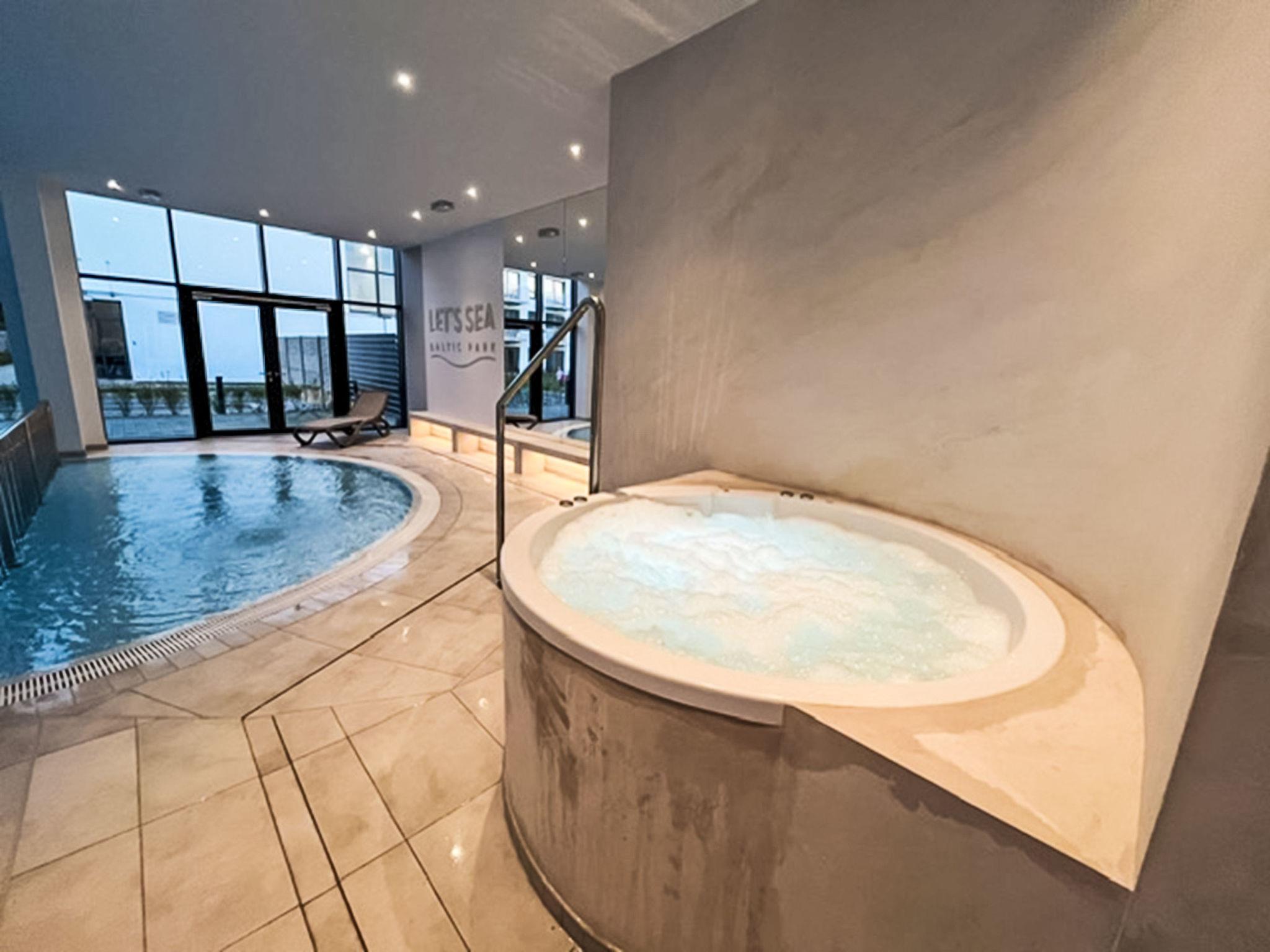 Comfortable apartment block "Gaski", built in 2024. In the resort, 300 m from the beach. For shared use: swimming pool heated (seasonal availability: 01.Jan. - 31.Dec. pool opening hours: 09:00-21:00). Tennis, floodlit, children's playground. In the house: WiFi, sauna, fitness room, hot tub, lift, central heating system, washing machine, tumble dryer. Communal covered parking space n 13. Grocery, restaurant 300 m, bus stop 13 km, railway station 6 km, sandy beach 300 m.