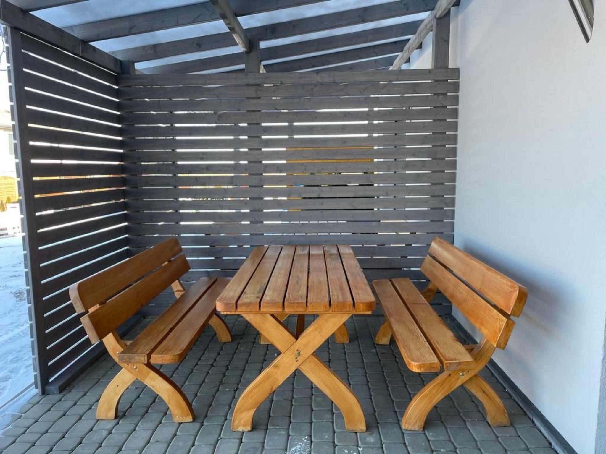 Our property is 1 of 4 terraced houses. It is located in a secluded place in Gaski, 1000m from the beach and 800m from the centre. It is situated on a dead end street as the last building, so there is no car traffic and noise. It is a one-storey brick building, year-round. There are 4 terraced houses. Each house is a single-storey house of about 40m2. It consists of a bedroom, a bathroom and a living room with a kitchenette.