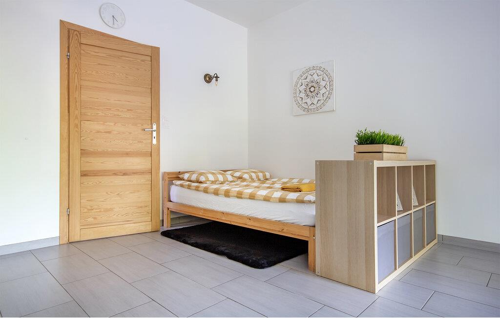 Den moderne indretning kombineret med komfort og hygge skaber en indbydende atmosfære i denne ferielejlighed. De store vinduespartier giver masser af lysindfald og en vidunderlig udsigt over den grønne have. I opholdsstuen/soveområdet kan I finde et sjovt spil frem eller læse nogle sider i yndlingsbogen på sofaen. Når sulten nærmer sig, kan I lave mad sammen i det veludstyrede køkken. Nyd fælles haven med grill. Oplagt til hyggelige sommeraftener med gode kolde drinks.
