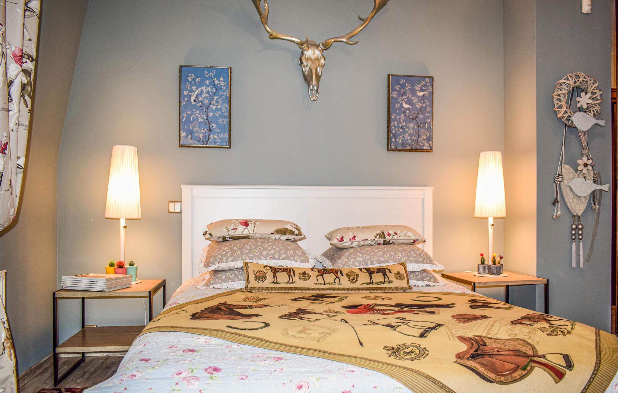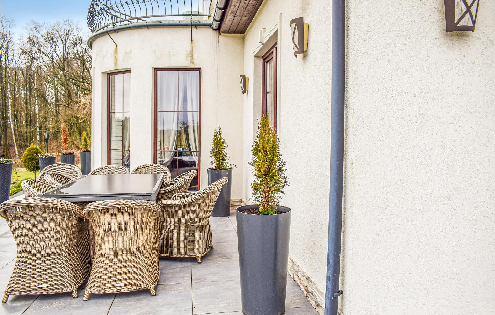 Huset ligger i skoven nær Okonim, Szczucze-søen og Niemica-floden. Det er smagfuldt, moderne og praktisk indrettet. Den smukke beliggenhed i et roligt område danner den ideelle ramme for en afslappende ferie. I dette smukke, komfortable og moderne feriehus kan I trække jer tilbage fra hverdagens stress og jag og slappe helt af. Der er en pejs i stuen, hvor I kan tilbringe mange hyggelige øjeblikke.