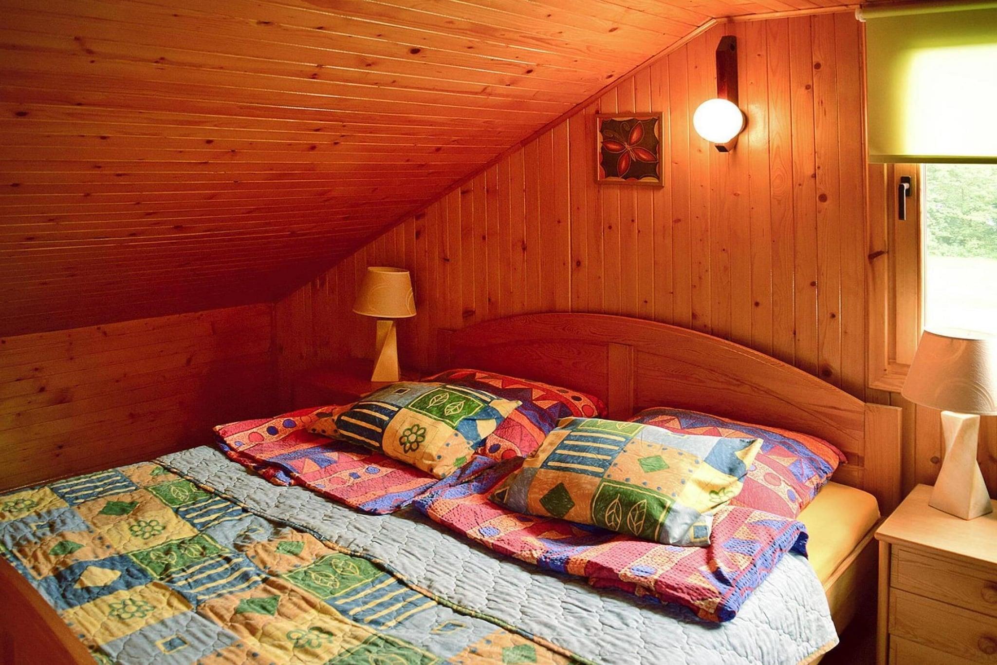Stueetage: (soveværelse(dobbeltseng), badeværelse(bruser, håndvask, toilet)) Mellemetage: (åbent køkken(elkedel, cooker, komfur(Komfur med fire kogeplader, gas), espressomaskine, køle-fryseskab), stue / spisestue(dobbeltsovesofa, Fjernsyn(parabol, Tyske TV-kanaler), spisebord, pejs, sofahjørne)) På 1. etage: (soveværelse(dobbeltseng), soveværelse(dobbeltseng), toilet(håndvask, toilet)) vaskemaskine, varme, terrasse(overdækket), have(privat, indhegnet, anlagt have, 1000 m2), havemøbler, grill, parkering
