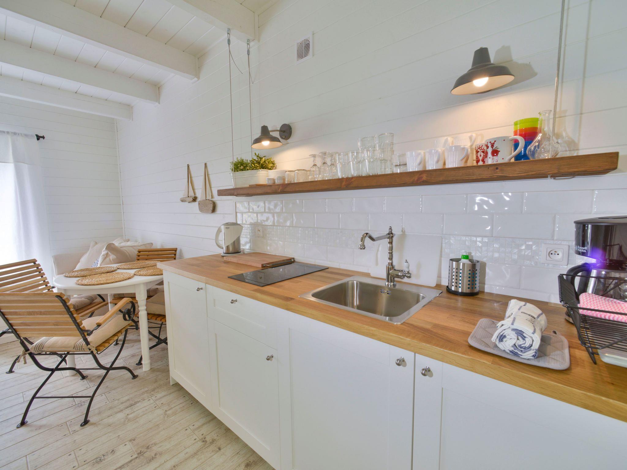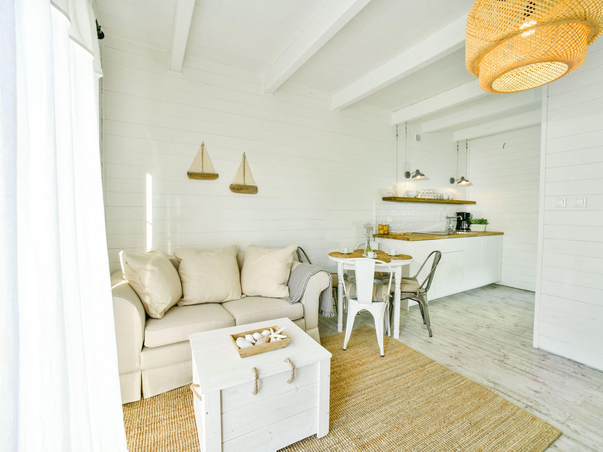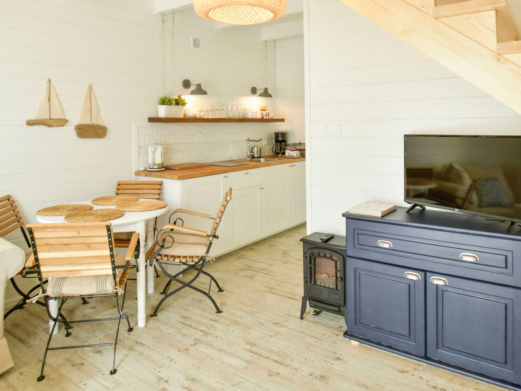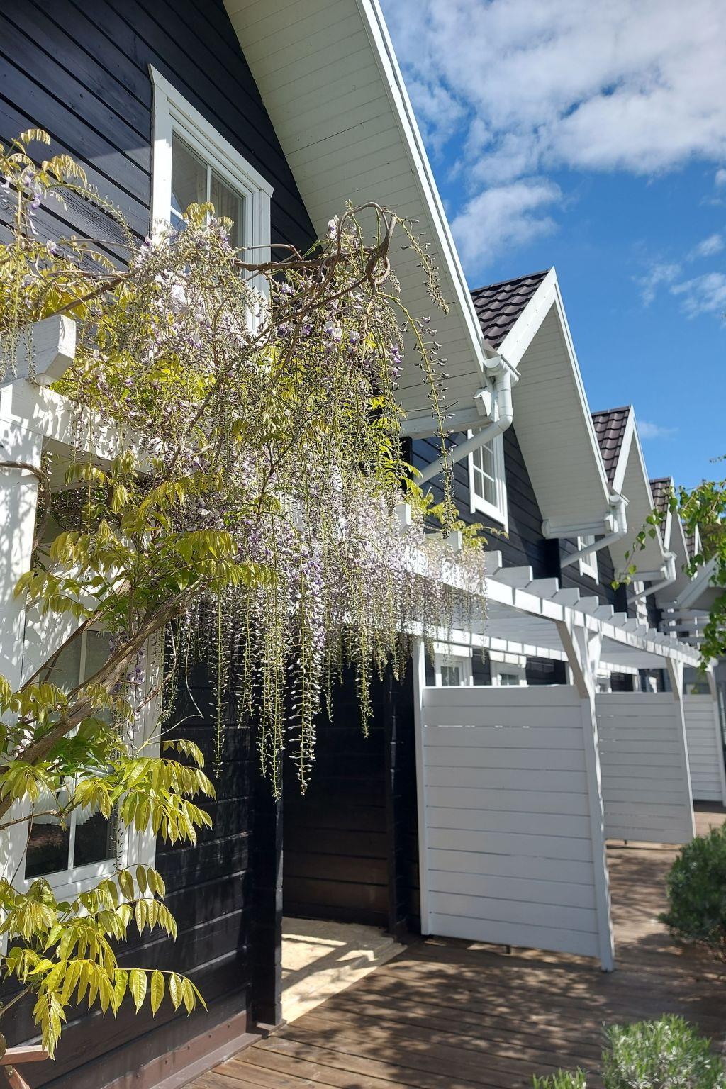 Each Blå Marine 56 m2 cottage consists of: - two separate bedrooms upstairs (hotel beds) - living room with dining area and view of the forest or garden - kitchenette on the ground floor (coffee maker, pots, tableware) - bathroom and toilet on the ground floor - own terrace with garden furniture Standard of the Blå Marine cottages : - hotel standard furnishings spiced up with seaside design - functional electric heating (radiators) - stylish stove/goat for cooler evenings - barbecue area - Wi-Fi internet - board games for children and adults - bicycles for an extra charge - beach equipment: screens and sun loungers - free parking - laundry service on request.