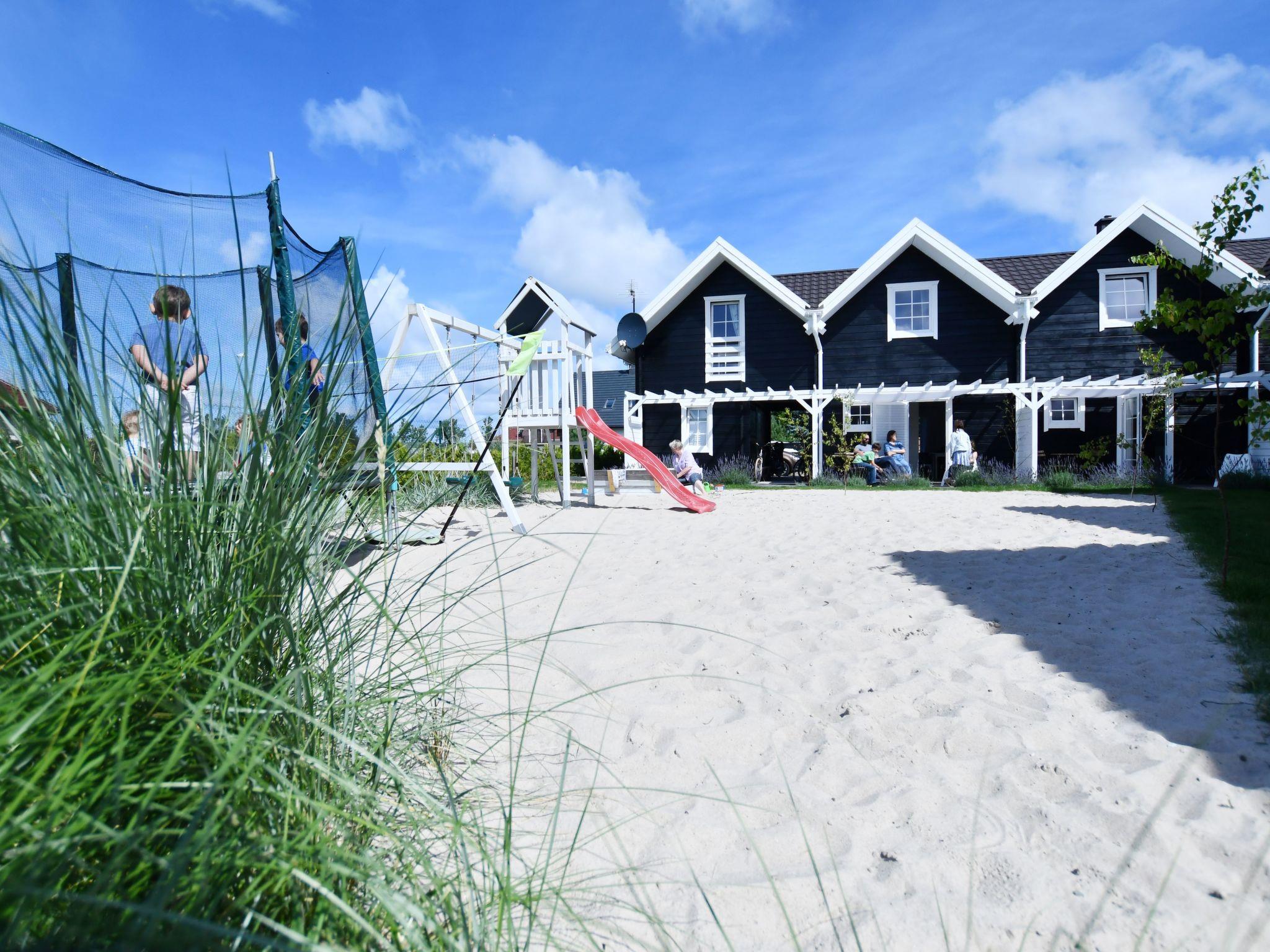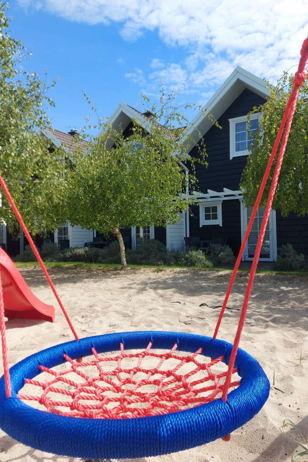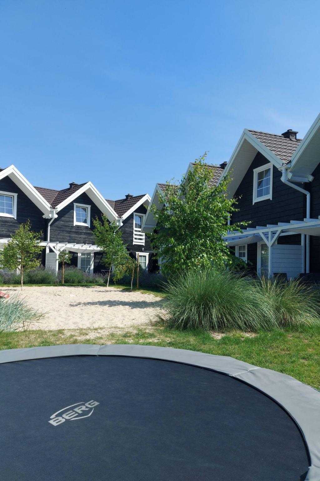 Shared garden, sea sand playground for children: jumping trampoline, swings, slide, sandpit. Barbecue area and badminton area. Wooden terraces with garden furniture and sun loungers. Fenced in area. Peace and quiet.