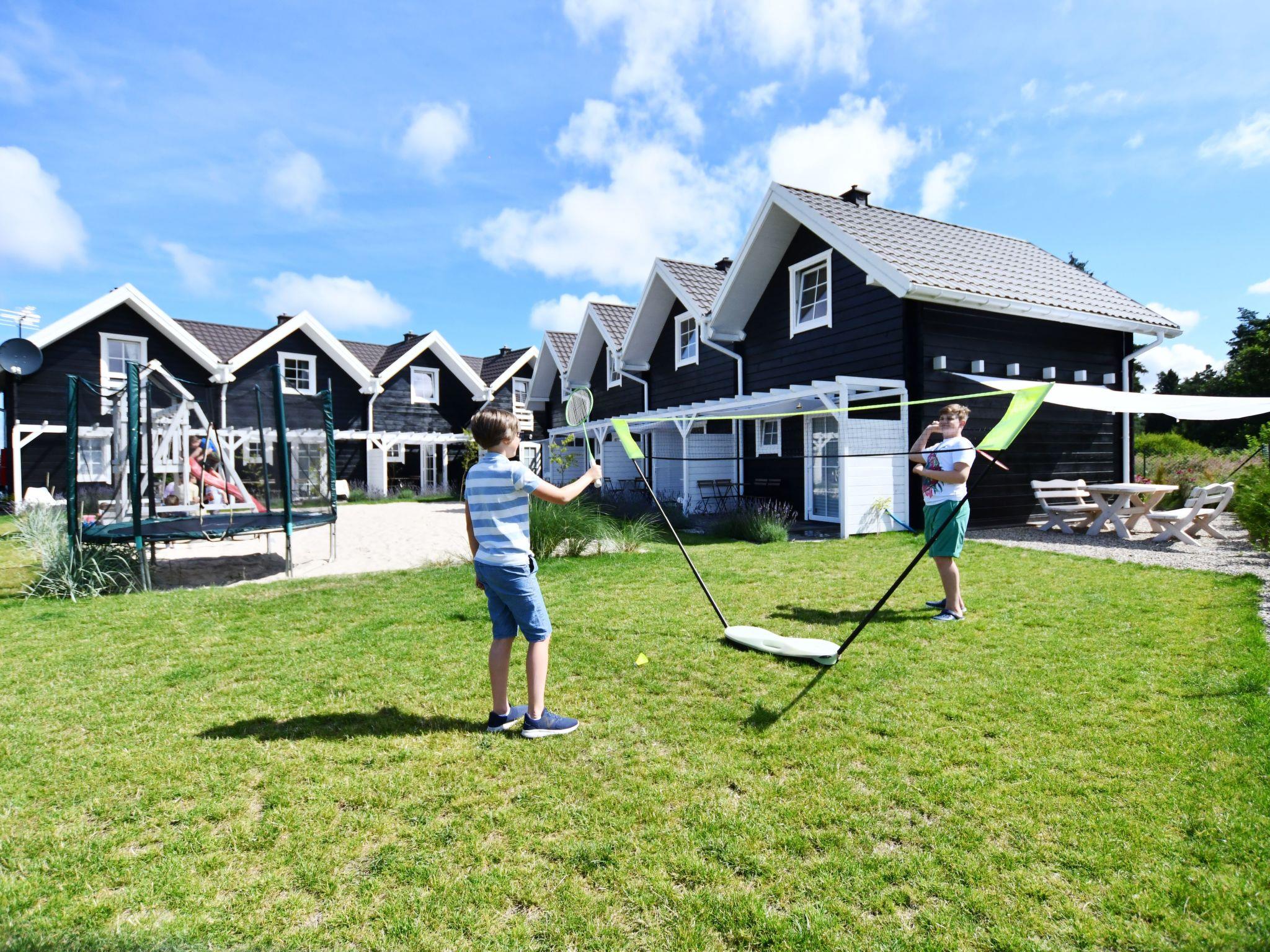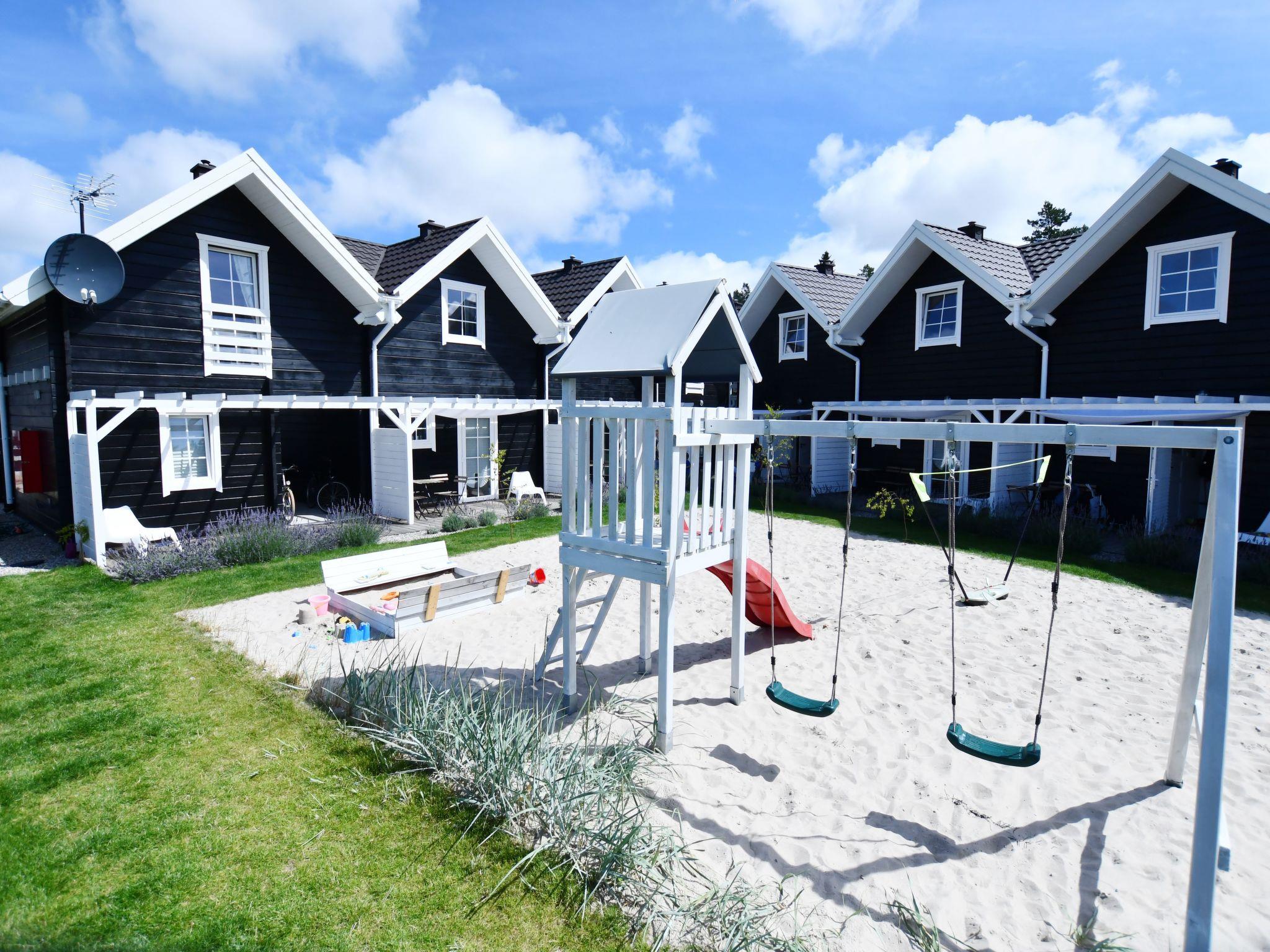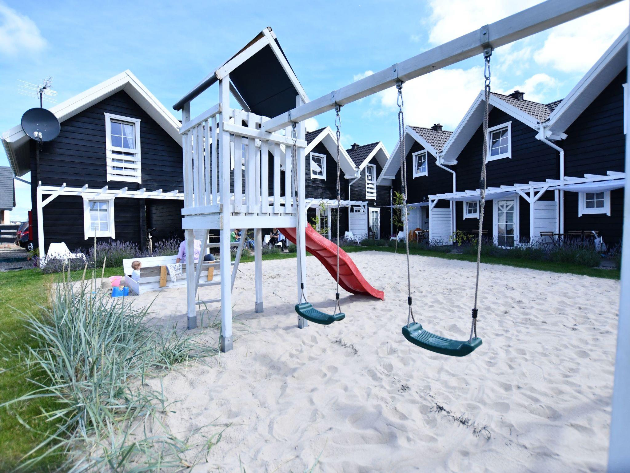 Shared garden, sea sand playground for children: jumping trampoline, swings, slide, sandpit. Barbecue area and badminton area. Wooden terraces with garden furniture and sun loungers. Fenced in area. Peace and quiet.