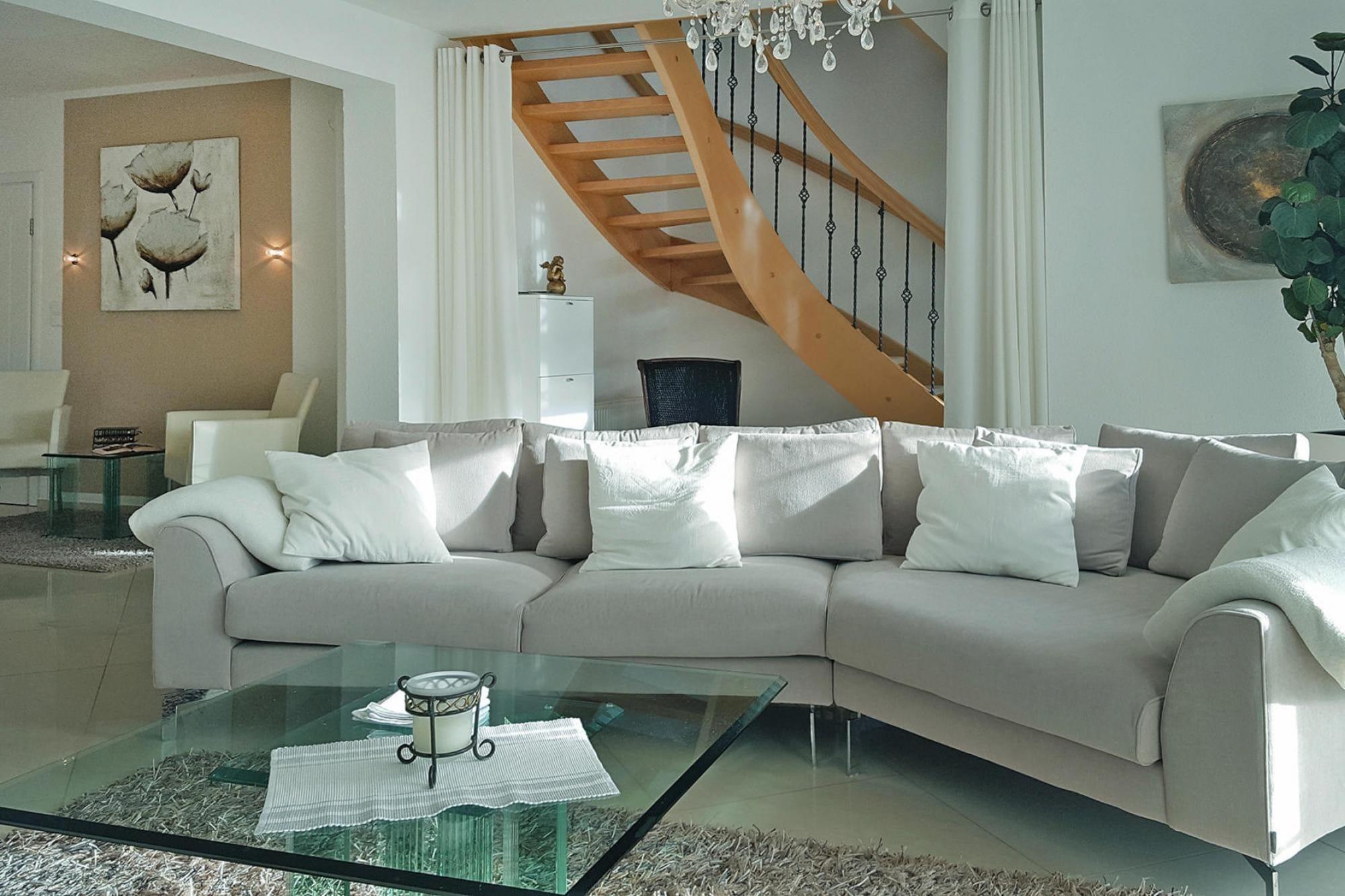 Stueetage: (åbent køkken(spisebord(8 personer), kogeplade(Komfur med fire kogeplader, elektrisk), elkedel, brødrister, kaffemaskine, ovn, mikrobølgeovn, opvaskemaskine , køle-fryseskab), stue / spisestue(75 m2)(Fjernsyn(fladskærm, parabol, Tyske TV-kanaler), DVD-afspiller, radio), soveværelse(dobbeltseng), badeværelse(bruser, håndvask, toilet), toilet(håndvask, toilet)) På 1. etage: (soveværelse(dobbeltseng), soveværelse(dobbeltseng), badeværelse(bruser, håndvask, toilet), badeværelse(bruser, håndvask, toilet), legeværelse) På 2. etage: (soveværelse(enkeltseng, dobbeltseng), badeværelse(bruser, håndvask, toilet)) Græsplæne, babybadekar, vaskemaskine(betalt), balkon, varme(central, gas, gulvvarme), terrasse, have(privat, indhegnet, 760 m2), havemøbler, solstole, grill(gas), parkering, barnestol, Solcreme, baby crib(free)