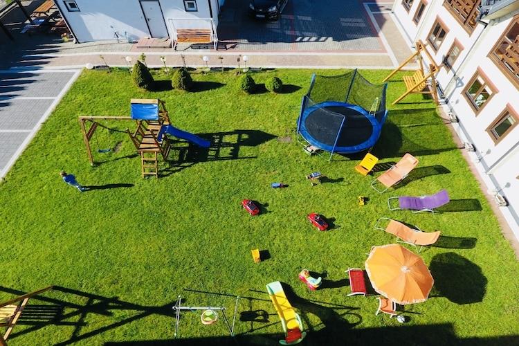 Her vil du føle dig hjemme og samtidig nyde det vidunderlige baltiske klima. Anlægget har en fremragende beliggenhed, meget tæt på havet, i et roligt område. Der er 9 træhuse i to etager i det indhegnede område af centret. Hver har en overdækket terrasse og en balkon på første sal. I stueetagen er der opholdsstue med TV, veludstyret køkken, badeværelse med bruser, og på første sal er der 2 separate soveværelser. Trådløst internet er tilgængeligt. På ejendommen er der parkeringsplads, cykeludlejning og en attraktiv legeplads (trampolin, hus med rutsjebane, legetøj). Tilbehør til små børn er tilgængeligt mod et ekstra gebyr (efter forudgående meddelelse): en barneseng, en høj stol, et babybadekar. Prisen for opholdet inkluderer: sengetøj, el- og vandforbrug, internet, parkering. Den fremragende beliggenhed giver hurtig adgang til stranden. Den længste cykelsti i Polen (R-10) løber i nærheden. Nabobyen Kolobrzeg er også et godt sted at drage fordel af mange attraktioner og kan nås med cykelsti, offentlig transport eller bil. Grzybowo er en kystby, som ivrigt er valgt af turister på grund af dens intime karakter og beliggenhed mellem Kolobrzeg og Dzwirzyno. Begge byer byder på mange attraktioner. I Kolobrzeg kan du besøge havnen, molen, strandpromenaden, alt sammen beriget med mange forskellige begivenheder og attraktioner året rundt. Dzwirzyno er en typisk turistby. Beliggenheden er et besøg værd på grund af Resko-søen, hvor du kan bruge din tid aktivt ved at leje forskellige typer vandudstyr. Hovedattraktionen på søen er windsurfing på grund af søens lavvandede tilstand og den gunstige vind.