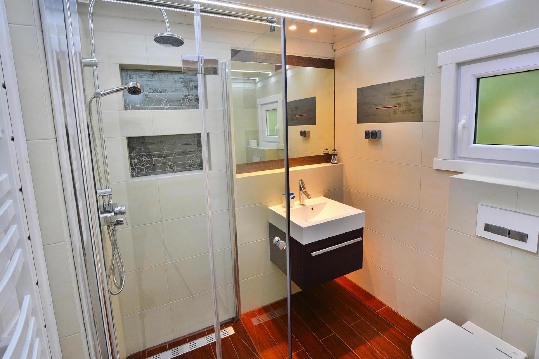 Stueetage: (åbent køkken(kogeplade(Komfur med to kogeplader, induktion), elkedel, kaffemaskine, mikrobølgeovn, opvaskemaskine , køle-fryseskab), stue / spisestue(dobbeltsovesofa, Fjernsyn(fladskærm, Tyske TV-kanaler), spisebord(6 personer)), badeværelse(bruser, håndvask, toilet)) På 1. etage: (soveværelse(dobbeltseng), soveværelse(2x enkeltseng)) Reception, Internetadgang, balkon, varme(elektrisk, gennem aircondition), klimaanlæg, terrasse(privat, overdækket), have(deles med andre gæster, indhegnet, 800 m2), havemøbler, solstole, grill(trækul), parking lot(public), barnestol, havepejs, baby crib(free)