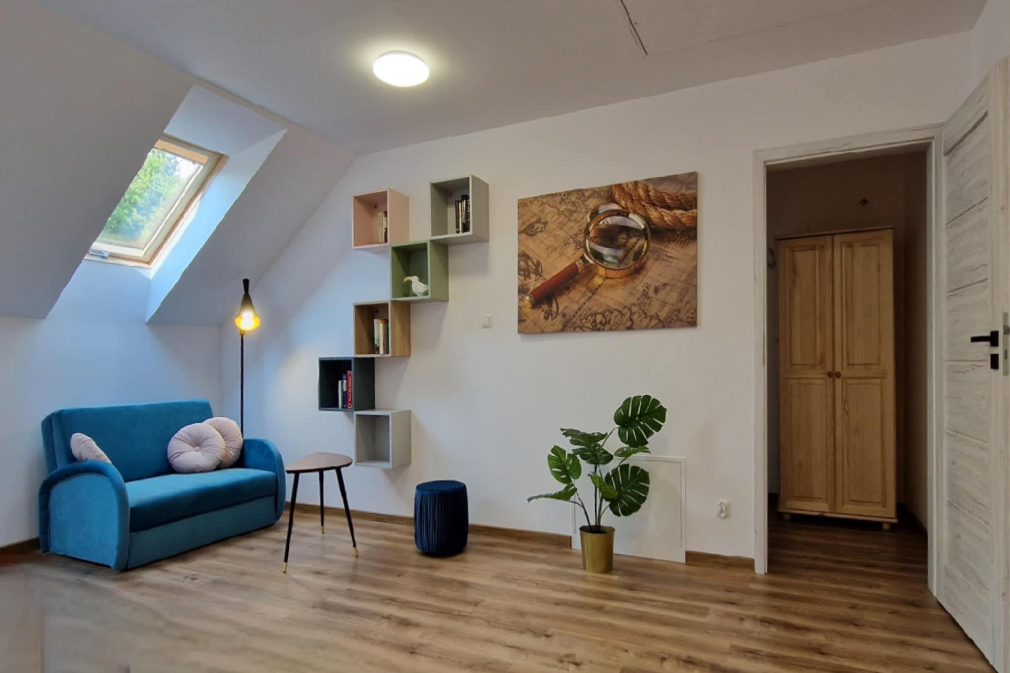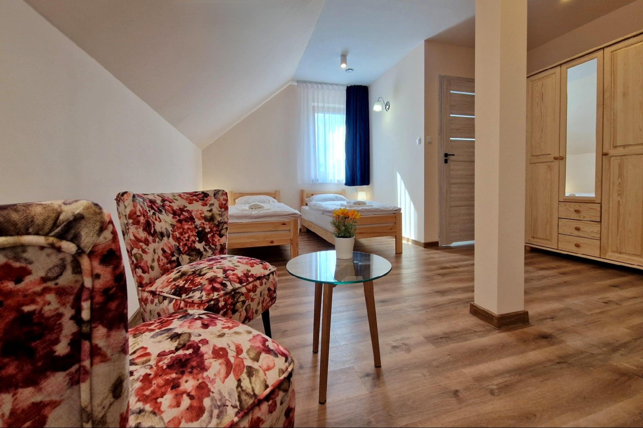 Et komfortabelt, nyt feriehus med swimmingpool, beliggende på et malerisk sted omgivet af bjerge og skove, væk fra civilisation og bystøj. Huset ligger i Wisniowa - en landsby 30 km fra byen Rzeszów og 35 km fra Rzeszów-Jasionka lufthavn. Anlægget har et areal på 120 m2 og er velegnet til 6 personer. Omkring det er der et rekreativt område med en grillpavillon og en swimmingpool. Lige ved siden af er der to små damme, hvor du kan fiske. Der er mange interessante vandreture rundt omkring. Der er tre dobbeltværelser, hver med to enkeltsenge, der kan slås sammen til en dobbeltseng. Derudover har hvert værelse et separat badeværelse med bruser. Anlægget er i to etager. På første sal er der et soveværelse og et åbent, afslappende "læsehjørne". I stueetagen er der en rummelig forhal, to soveværelser, et lille separat toilet, et lille bryggers og en stue med køkken. Et af værelserne med badeværelse er fuldt tilpasset handicappede. Badeværelset er udstyret med alle nødvendige håndtag til handicappede. Stueetagen er også indrettet til handicappede i kørestol. Begge værelser i underetagen har separate terrassedøre med direkte adgang til det fri. Køkkenet og den åbne stue er et fælles sted for alle gæster. Det fuldt udstyrede køkken indeholder alle nødvendige husholdningsapparater, det vil sige induktionskomfur, mikroovn, ovn, køleskab med fryser, opvaskemaskine, vaskemaskine, brødrister, dryp kaffemaskine og elkedel. Der er en have omkring feriehuset med et stort grillpavillon, udstyret med en vask og en lille drikkevarekøler. Foran huset er der en privat swimmingpool, 8x4 m, 1,5 m dyb. Om vinteren kan du svømme i poolen. Liggestole er også tilgængelige. Der er også loungemøbler på terrassen. Området er fuldt indhegnet. Gæsterne har 6 parkeringspladser til deres rådighed, hvoraf den ene er bredere - for handicappede. Ved siden af indgangsporten er der også plads til containere til affaldssortering. Der er gratis trådløs internetadgang overalt på anlægget. Husdyr er tilladt. Rygning er forbudt.