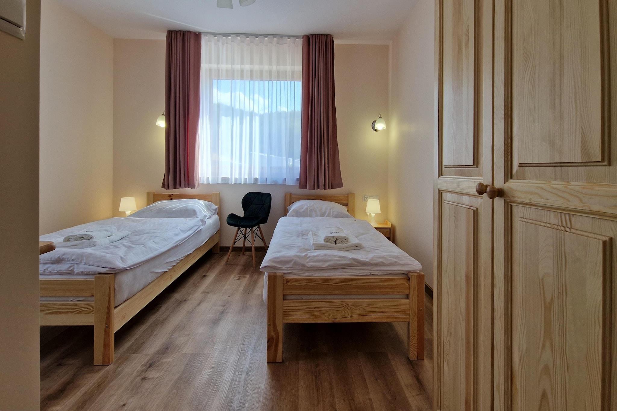Et komfortabelt, nyt feriehus med swimmingpool, beliggende på et malerisk sted omgivet af bjerge og skove, væk fra civilisation og bystøj. Huset ligger i Wisniowa - en landsby 30 km fra byen Rzeszów og 35 km fra Rzeszów-Jasionka lufthavn. Anlægget har et areal på 150 m2 og er velegnet til 8 personer. Omkring det er der et rekreativt område med en grillpavillon og en swimmingpool. Lige ved siden af er der to små damme, hvor du kan fiske. Der er mange interessante vandreture rundt omkring. Der er fire dobbeltværelser, hver med to enkeltsenge, der kan slås sammen til en dobbeltseng. Derudover har hvert værelse et separat badeværelse med bruser. Anlægget er i to etager. På første sal er der to soveværelser og et åbent, afslappende "læsehjørne". I stueetagen er der en rummelig forhal, to soveværelser, et lille separat toilet, et lille bryggers og en stue med køkken. Et af værelserne med badeværelse er fuldt tilpasset handicappede. Badeværelset er udstyret med alle nødvendige håndtag til handicappede. Stueetagen er også indrettet til handicappede i kørestol. Begge værelser i underetagen har separate terrassedøre med direkte adgang til det fri. Køkkenet og den åbne stue er et fælles sted for alle gæster. Det fuldt udstyrede køkken indeholder alle nødvendige husholdningsapparater, det vil sige induktionskomfur, mikroovn, ovn, køleskab med fryser, opvaskemaskine, vaskemaskine, brødrister, dryp kaffemaskine og elkedel. Der er en have omkring feriehuset med et stort grillpavillon, udstyret med en vask og en lille drikkevarekøler. Foran huset er der en privat swimmingpool, 8x4 m, 1,5 m dyb. Om vinteren kan du svømme i poolen. Liggestole er også tilgængelige. Der er også loungemøbler på terrassen. Området er fuldt indhegnet. Gæsterne har 6 parkeringspladser til deres rådighed, hvoraf den ene er bredere - for handicappede. Ved siden af indgangsporten er der også plads til containere til affaldssortering. Der er gratis trådløs internetadgang overalt på anlægget. Husdyr er tilladt. Rygning er forbudt.