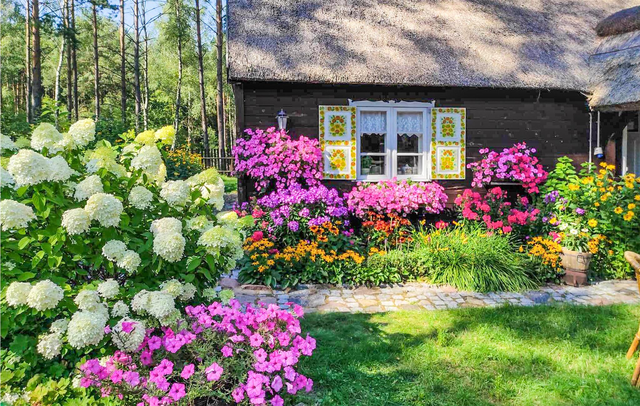 Dette hyggeligt indrettede og stråtækte landsted findes på en lukket grund. Den dejlige beliggenhed gør det til et optimalt feriested for jer, der søger freden og roen og de skønne naturomgivelser. I de skovrige omgivelser kan I samle svampe i sensommeren. Lej cykler hos ejeren til en pris, der aftales på stedet og udforsk egnen på to hjul. Stejl trappe i huset. Soverum 2 er et gennemgangsrum uden døre. 4 km til Osiek, hvor I kan leje heste. Ejer bor på grunden i et separat hus og står gerne til rådighed hvis I har brug for hjælp.