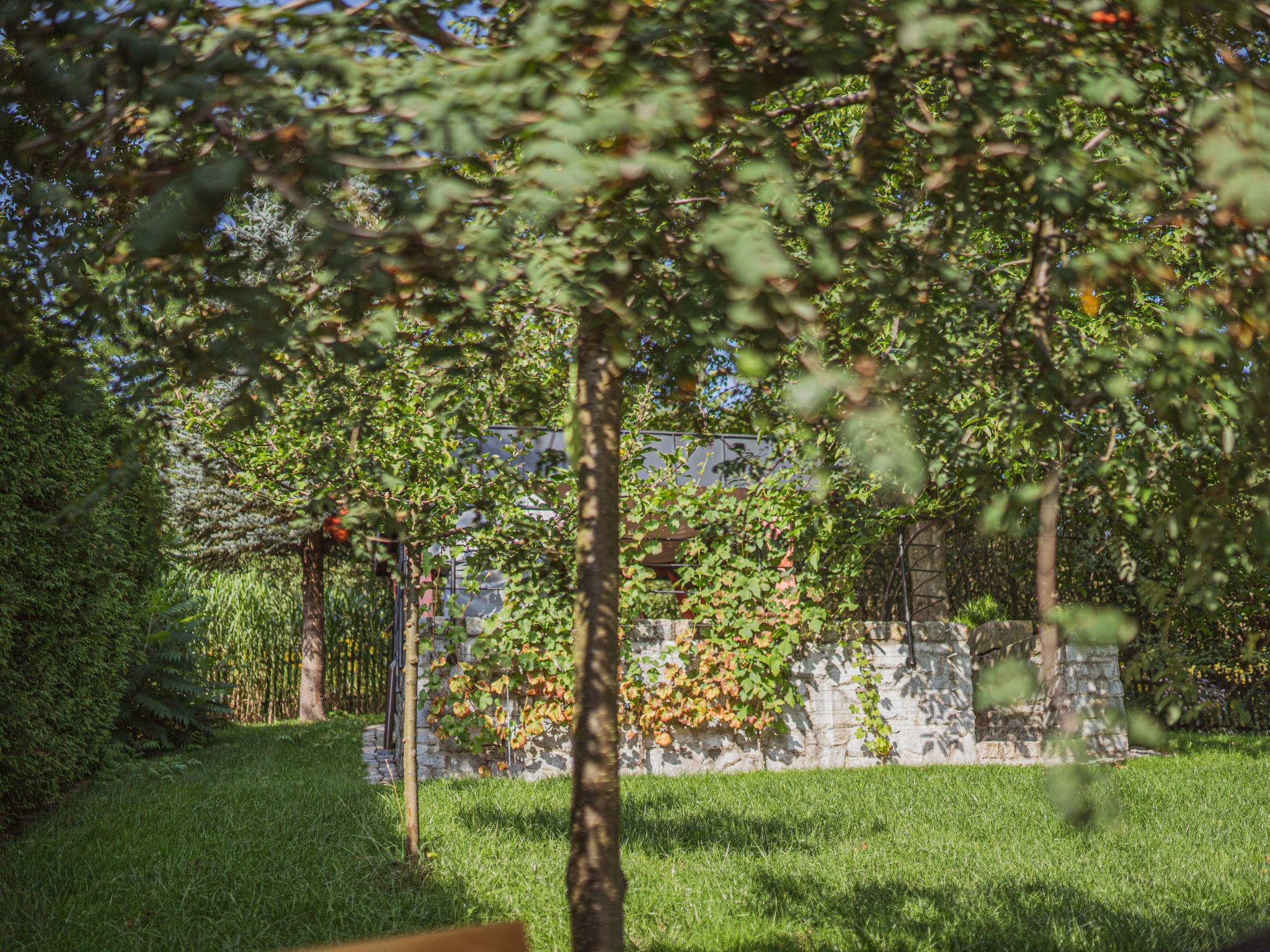 The outdoor area includes a spacious garden with a large covered terrace under shady walnut trees. Here you can make yourself comfortable on high-quality teak garden furniture, use the barbecue and fire pit and relax completely. Firewood is provided and there is play equipment and a playground for the youngest guests.