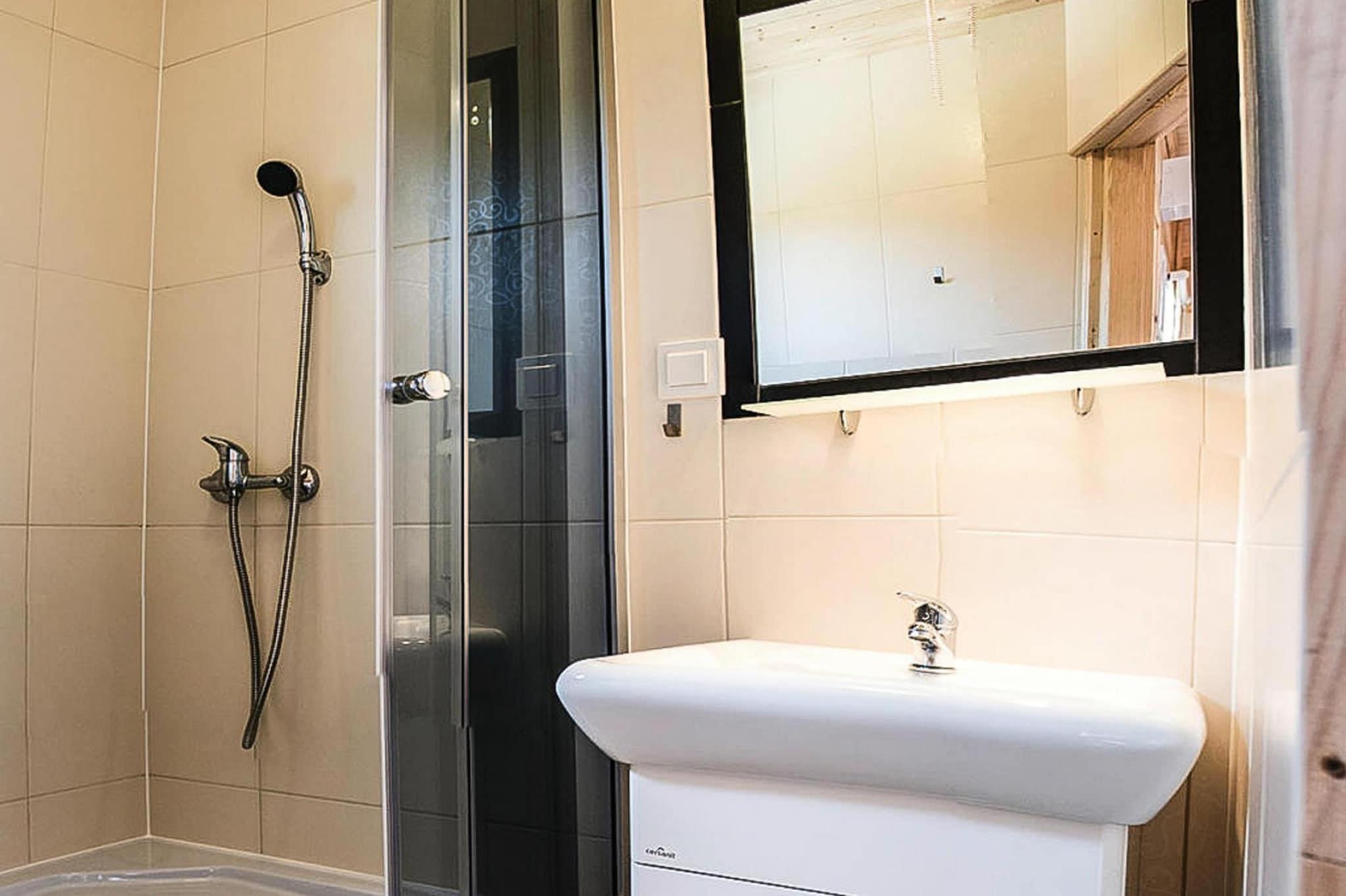 Stueetage: (åbent køkken(kogeplade(Komfur med to kogeplader, elektrisk), elkedel, køle-fryseskab), stue / spisestue(dobbeltsovesofa, Fjernsyn(fladskærm), spisebord(5 personer)), soveværelse(dobbeltseng), soveværelse(3-etage-køjeseng), badeværelse(bruser, håndvask, toilet)) Reception, Internetadgang, Græsplæne, vaskemaskine(deles med andre gæster), terrasse(overdækket), have(deles med andre gæster, indhegnet, 2000 m2), havemøbler, solstole, grill(trækul), parkering, trampolin(deles med andre gæster), sandkasse(deles med andre gæster), legeredskaber(deles med andre gæster), bordtennisbord(deles med andre gæster), bordfodbold(deles med andre gæster), biljard(deles med andre gæster), cykler til rådighed, barnestol, legetøj, Volleyballbane, baby crib(free)