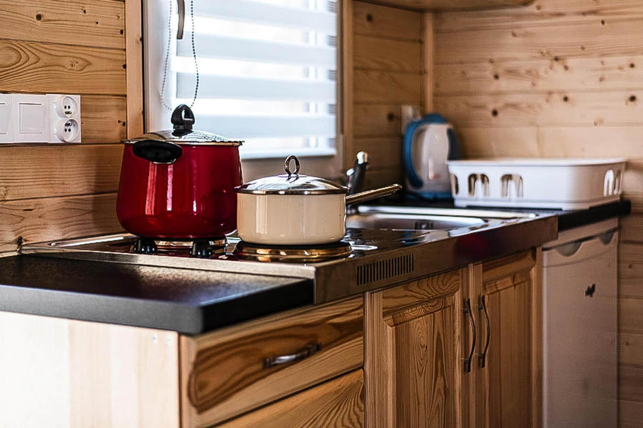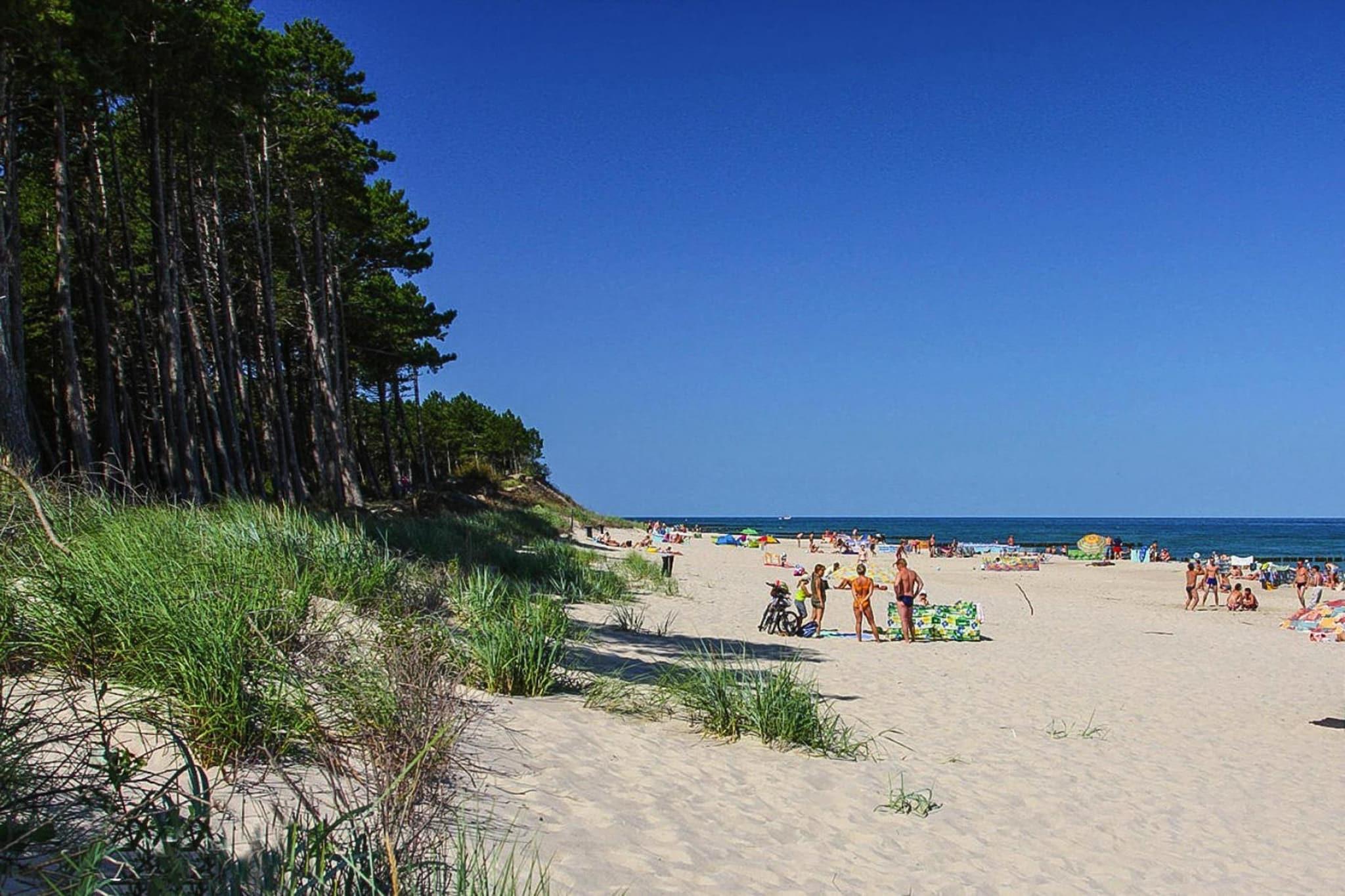 Et intimt feriested beliggende i udkanten af ??sommerlandsbyen Jezierzany. Stranden ved havet ligger ca. 2,5 km væk, som bedst dækkes af cykel (gratis cykler er tilgængelige på resortet). Det er en lignende afstand til Lake Wicko (du kan fiske der, leje en båd og svømme der). Pæne etplanshuse i træ. Hver består af en stue med en dobbelt fold-ud sofa, et tekøkken, 2 separate soveværelser og et badeværelse med bruser. Hvert hus har en overdækket terrasse med et sæt havemøbler. Der er grillfaciliteter til rådighed. Trådløst internet er tilgængeligt. Der er en parkeringsplads og en attraktiv legeplads på stedet. Der er bordtennisbord, billard, bordfodbold, sportsplads og cykler til rådighed. Prisen for opholdet inkluderer: sengelinned, vandforbrug, parkering, internet, slutrengøring, barneseng og høj stol (forudgående reservation nødvendig). Jezierzany er en stille, lille ferieby, beliggende på den centrale kyst, tæt på Jaroslawiec, Darlowo og Ustka. Det vidunderlige klima og landskaber, fyrreskove, klare vand i havet og en klippe ved havet er de fordele, der gør, at dette sted tiltrækker skarer af turister hvert år. Der er også mange interessante attraktioner, der venter på turister her, som vil diversificere deres ferie ved havet. En rig gastronomisk base tilbydes af den nærliggende Jaroslawiec, 3 km derfra. Attraktioner i området: Stranden ved havet er ideel for turister, der kan lide at solbade på uoverfyldte steder. På stranden kan du se farverige fiskerbåde og finde gyldent rav. Efter den nylige renovering er stranden meget bred og smuk.