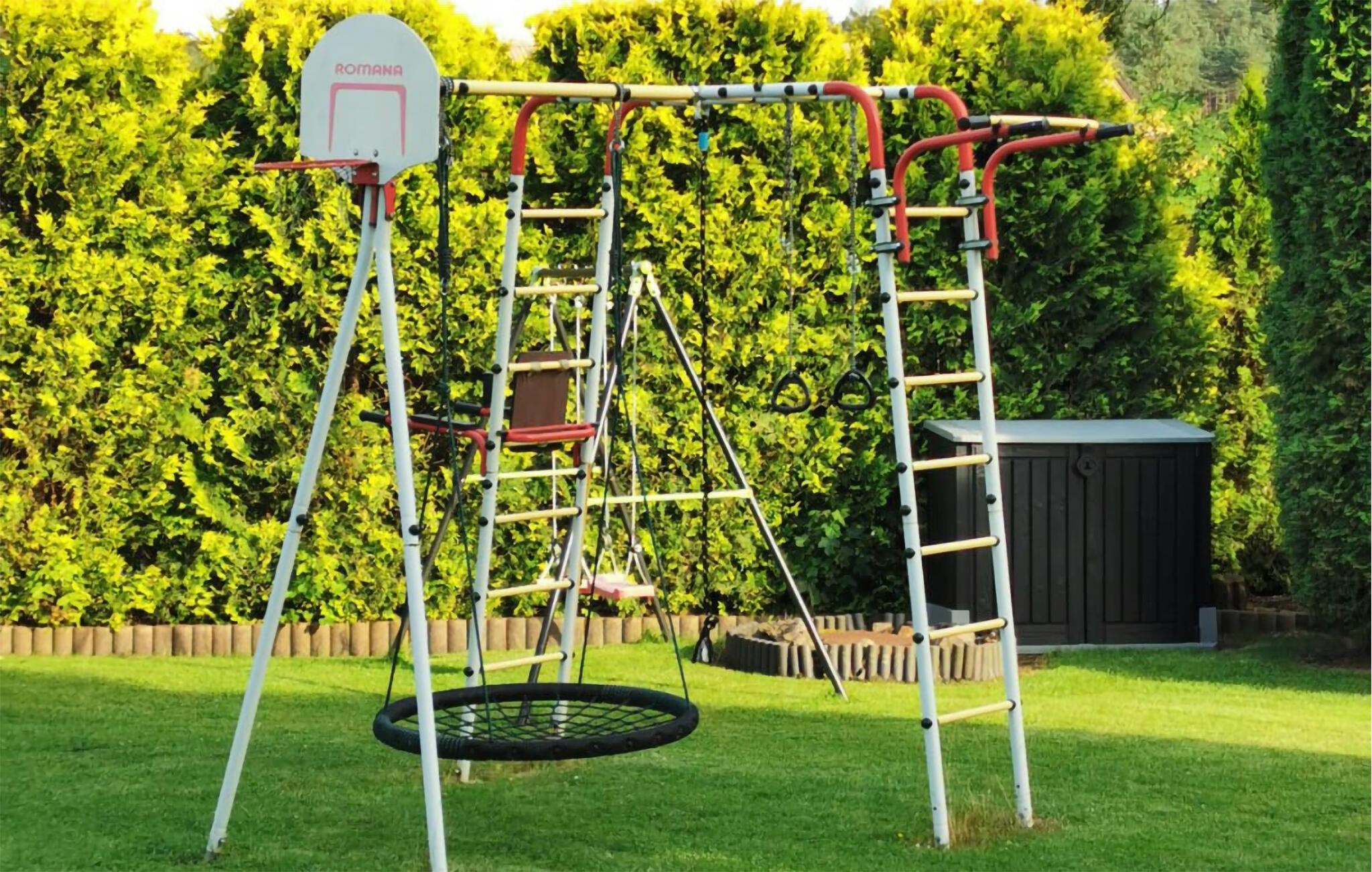 Glæd jer til hyggelige timer udendørs, hvor I kan nyde solen på terrassen, snuppe en frisk dukkert i poolen, der deles med andre gæster, og grille på lune sommeraftener. Børnene vil blive godt underholdt takket være de mange legeredskaber.