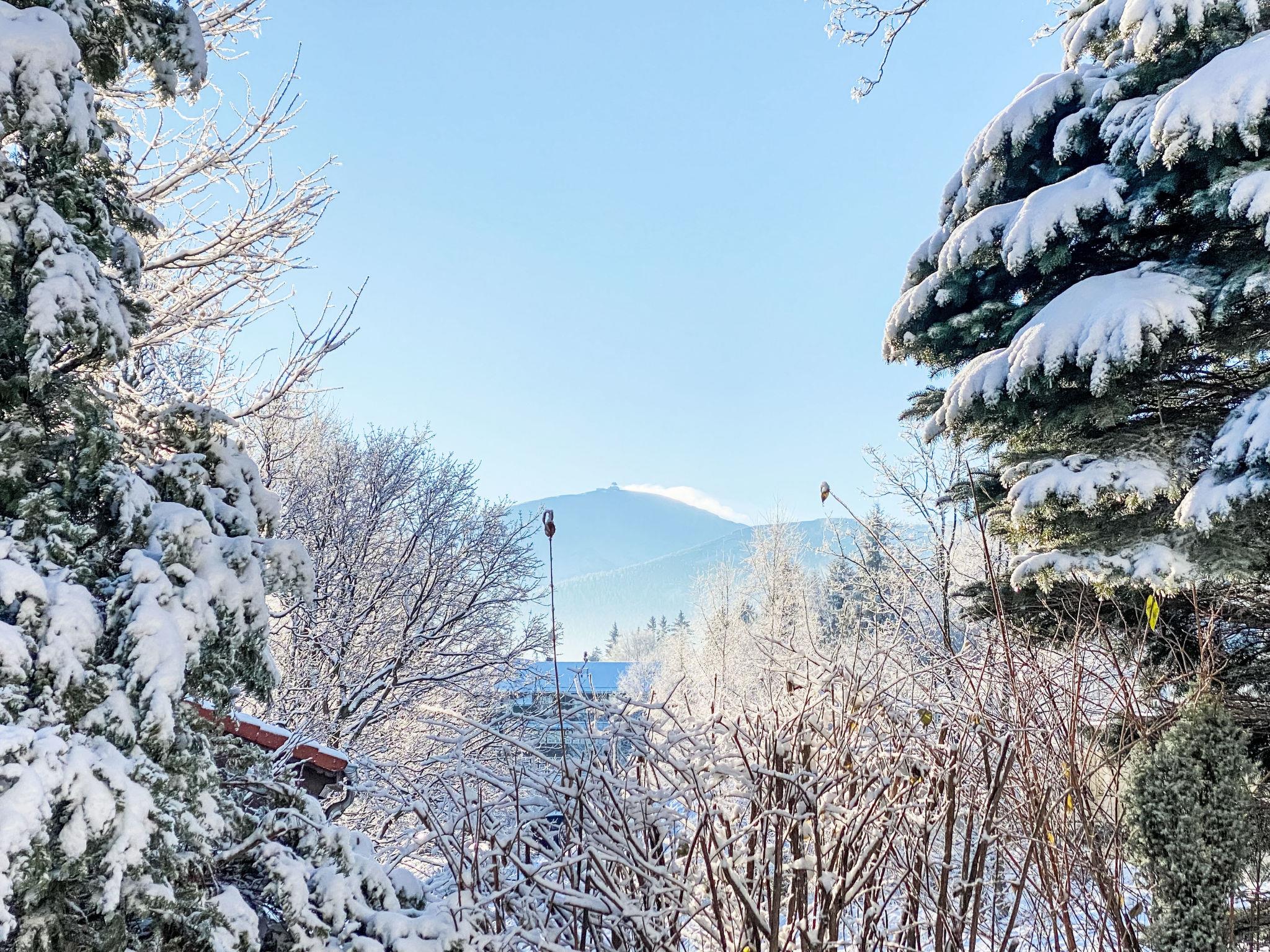 House "Holiday home in the Giant Mountains", built in 1996, renovated in 2022. On the outskirts, 300 m from the skiing area, 20 m from the stream. Private: property 2'500 m2, garden 800 m2. Barbecue, parking (for 4 cars) at the house. Grocery 200 m, supermarket 2 km, bus stop 400 m, outdoor swimming pool 2 km, thermal baths "Jelenia Góra" 15 km. Walking paths from the house, cycle lane 100 m, ski lift, slopes 300 m, cross country ski track 2.3 km, children's playground 150 m. Nearby attractions: Krkonoše National Park 100 m. Well-known ski regions can easily be reached: Kopa Karpacz 2.3 km, Pod Wangiem 300 m, Jakuszyce 40 km.