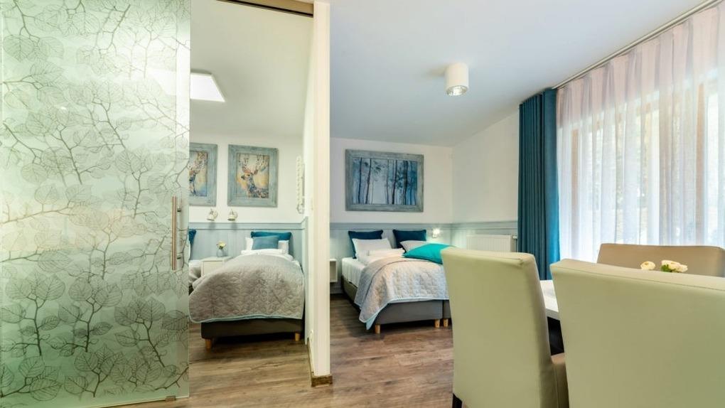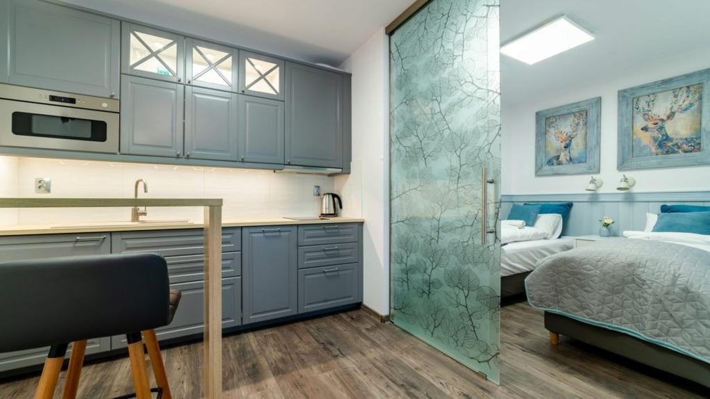 Hunde sind in ausgewählten Apartments willkommen. Der Aufpreis für die Unterbringung eines Haustieres beträgt 100 PLN (einmalige Gebühr). Gäste, die mit einem Hund übernachten möchten, werden gebeten, sich vorab telefonisch an die Mitarbeiter des örtlichen Büros in Karpacz zu wenden (die Telefonnummer finden Sie auf unserer Website im Reiter KONTAKT).
