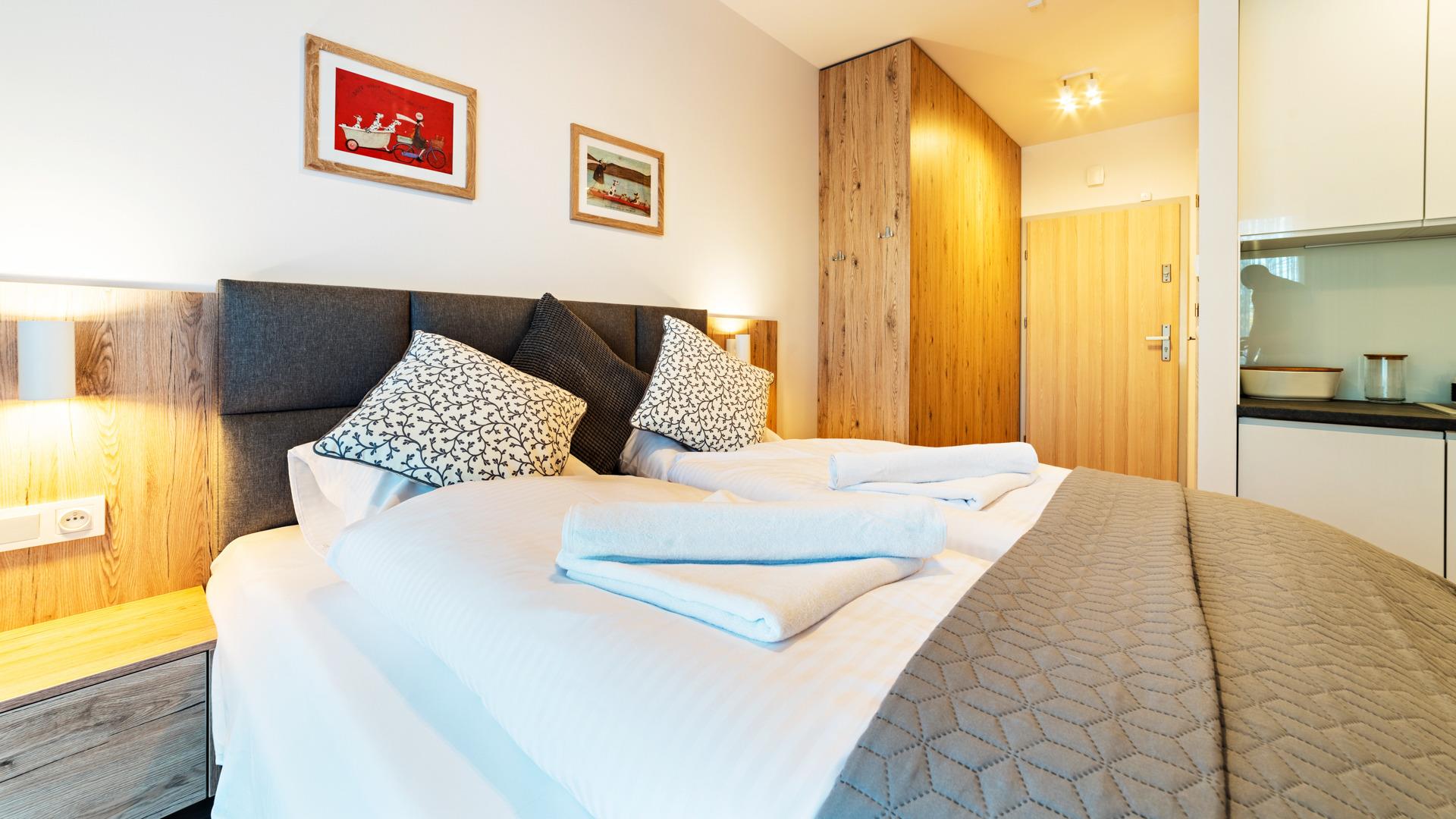 Die Apartments sind mit sauberer Bettwäsche und Handtüchern ausgestattet.