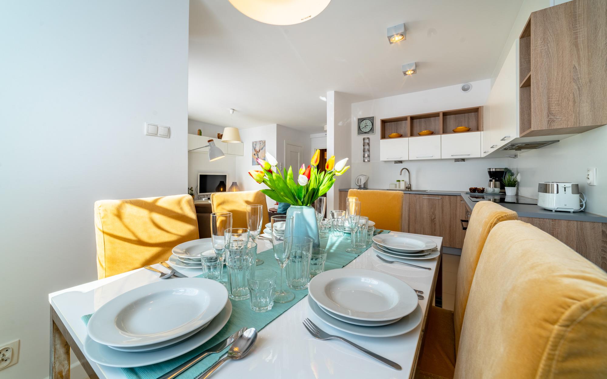 Zu den gewählten Apartments darf man mit dem Hund ankommen. Die zusätzlichen Kosten des Aufenthalts mit einem vierbeinigen Freund betragen 100 PLN (Einzelgebühr). Die Gäste, die den Aufenthalt mit dem Hund planen, bitten wir um eine frühere Kontaktaufnahme mit unserem Service im lokalen Büro.