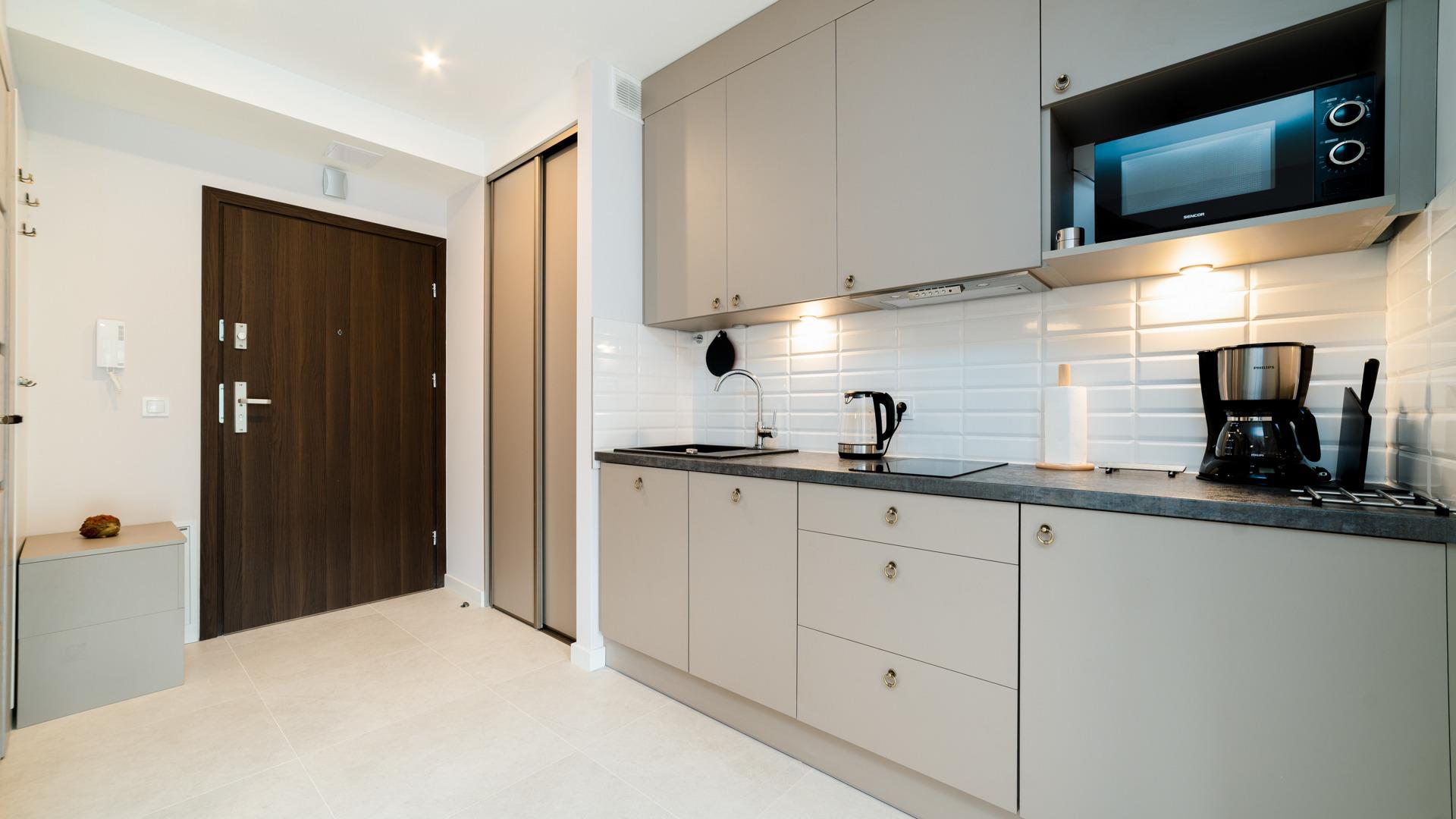 Alle angebotenen Apartments verfügen über eine voll ausgestattete Küchenzeile und ein elegantes Badezimmer mit Dusche.
