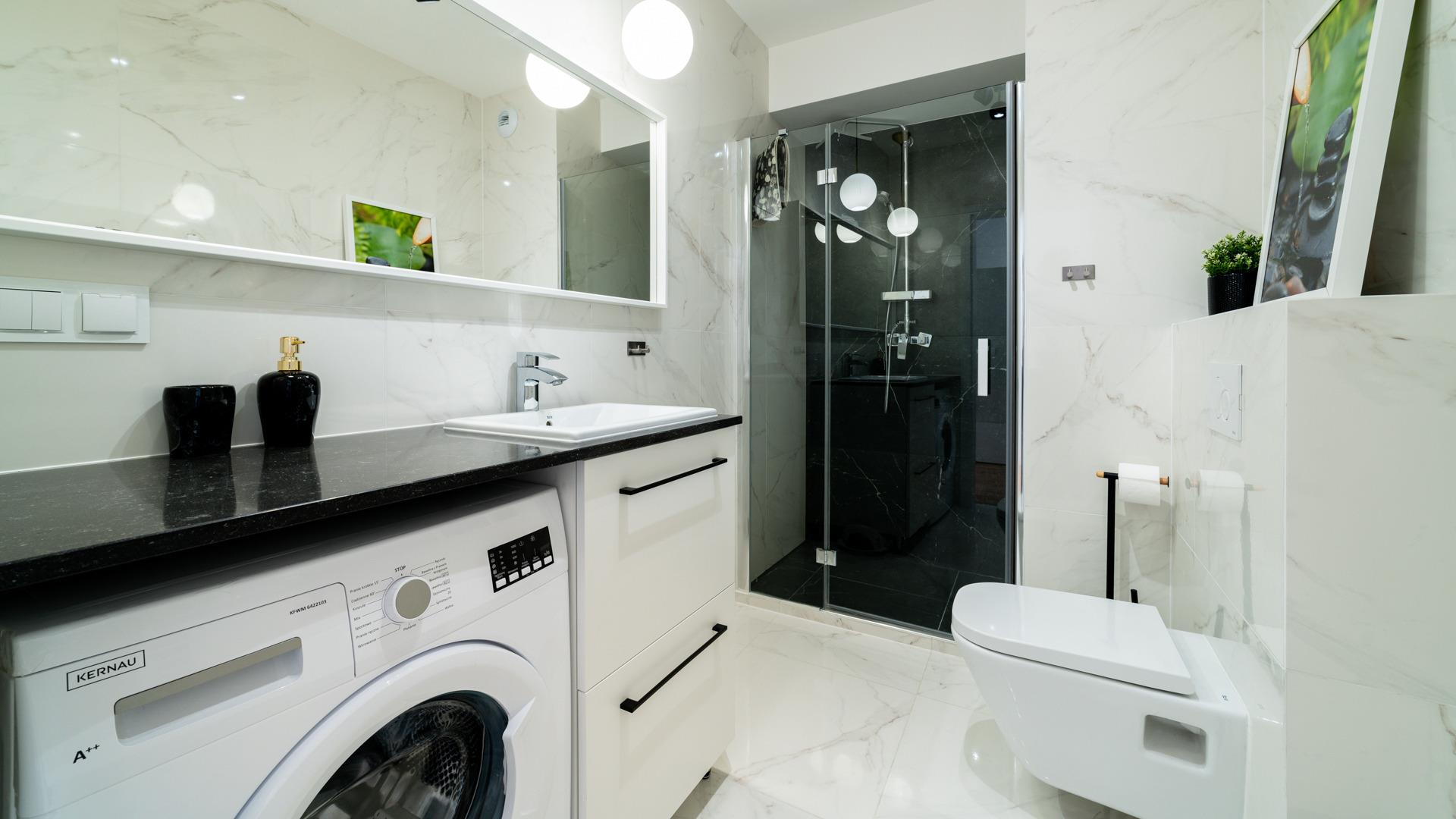 Alle angebotenen Apartments verfügen über eine voll ausgestattete Küchenzeile und ein elegantes Badezimmer mit Dusche.