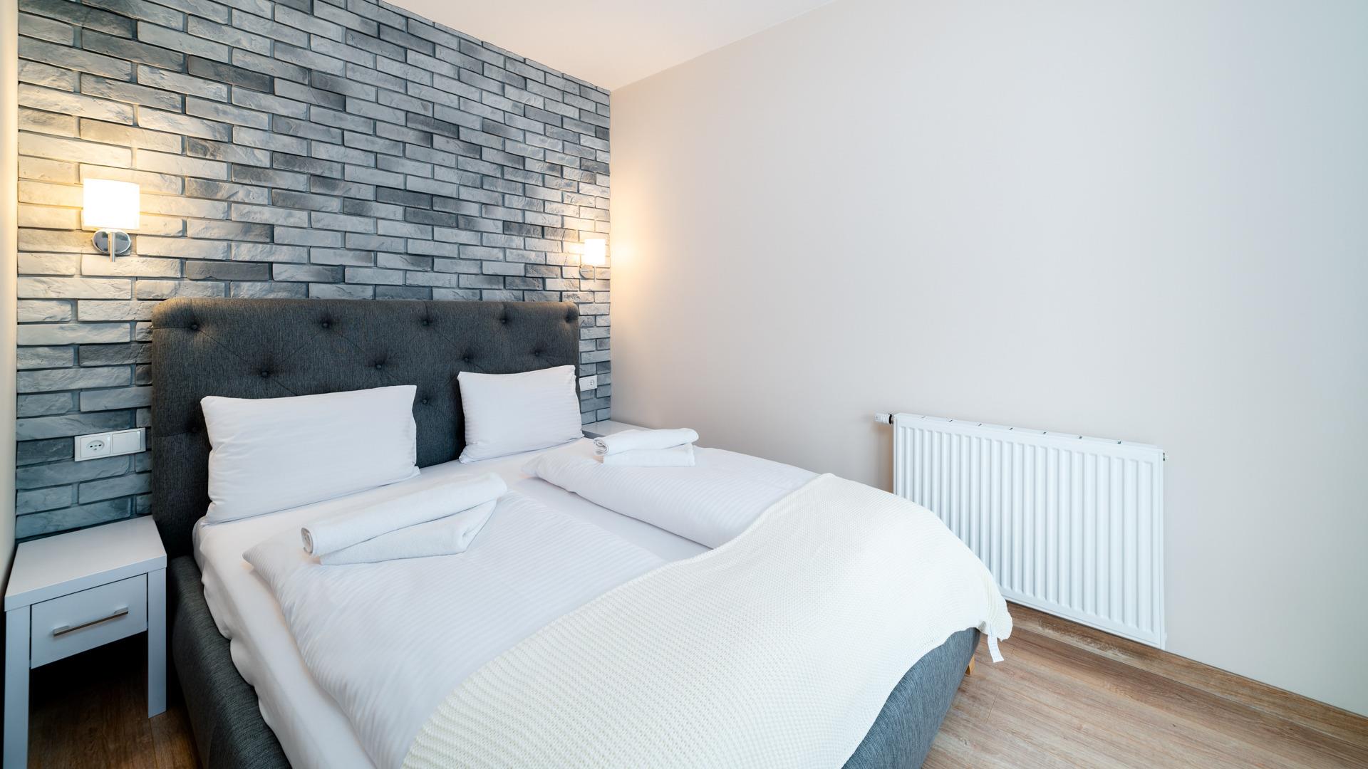 Die Apartments sind mit sauberer Bettwäsche und Handtüchern ausgestattet.