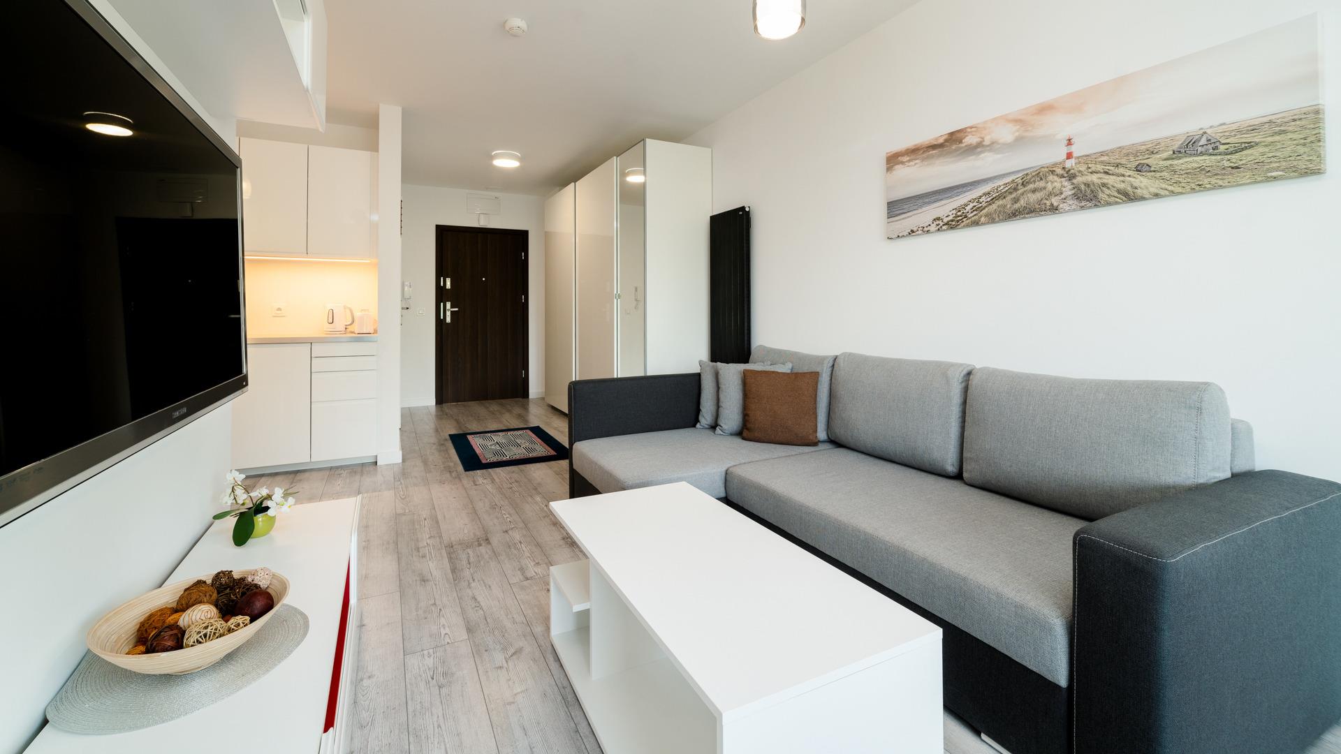 Zu den gewählten Apartments darf man mit dem Hund ankommen. Die zusätzlichen Kosten des Aufenthalts mit einem vierbeinigen Freund betragen 100 PLN (Einzelgebühr). Die Gäste, die den Aufenthalt mit dem Hund planen, bitten wir um eine frühere Kontaktaufnahme mit unserem Service im lokalen Büro.