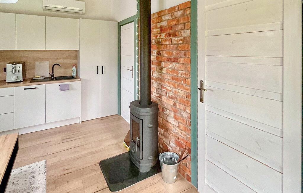 Nyd afslappende dage i dette moderne feriehus nær en sø. Jeres feriehus tilbyder en vidunderlig base for en pause i naturen. Lad den lyse, indbydende atmosfære i dette kompakte hus omslutte jer. Hyg jer sammen i den hyggelige hjørnesofa i stuen. Brændeovnen sørger for behagelig varme på køligere dage og giver rummet en hyggelig atmosfære. Tilbered enkle måltider i tekøkkenet og nyd udsigten over de grønne omgivelser gennem gulv-til-loft-vinduerne. Brug det overdækkede område i den glaserede udestue til rolige timer med udsigt. Husets let hævede beliggenhed giver jer en smuk udsigt over grunden. Gå en tur langs kompleksets velholdte stier eller slap af i de naturlige omgivelser. Oplev området omkring Prokowo og nå Letinc-søen med en kort gåtur. Udforsk de maleriske vandrestier i det kasjubiske Schweiz eller besøg byen Kartuzy med dens klosterkompleks og regionale museum. Tag en tur til udsigtspunktet ved Wiezyca eller tilbring en dag ved Radunskie Górne-søen.