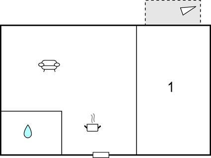Soveværelse 13m2 (nr. 1) - 2 Sovepladser. (Dobbeltseng(e)). 2 Sovepladser. (Sofa, madras eller lignende).