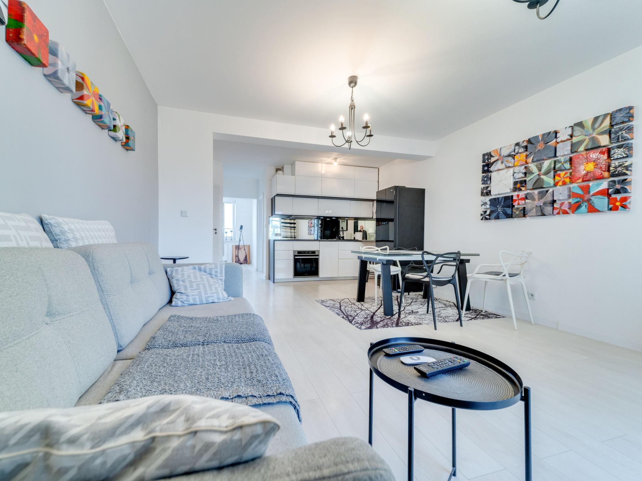 2-room apartment 53 m2 on 1st floor. Practical and cosy furnishings: living/dining room with 1 double sofabed (140 cm, length 200 cm), satellite TV. Exit to the balcony. 1 room 10 m2 with 1 french bed (140 cm, length 200 cm). Open kitchen (oven, dishwasher, 4 ceramic glass hob hotplates) with dining table. Shower/bidet/WC. Heating, gas heating. Balcony 2 m2. View of the mountains and the resort. Facilities: washing machine. Internet (WiFi). Dressing room with wardrobe - separate room.