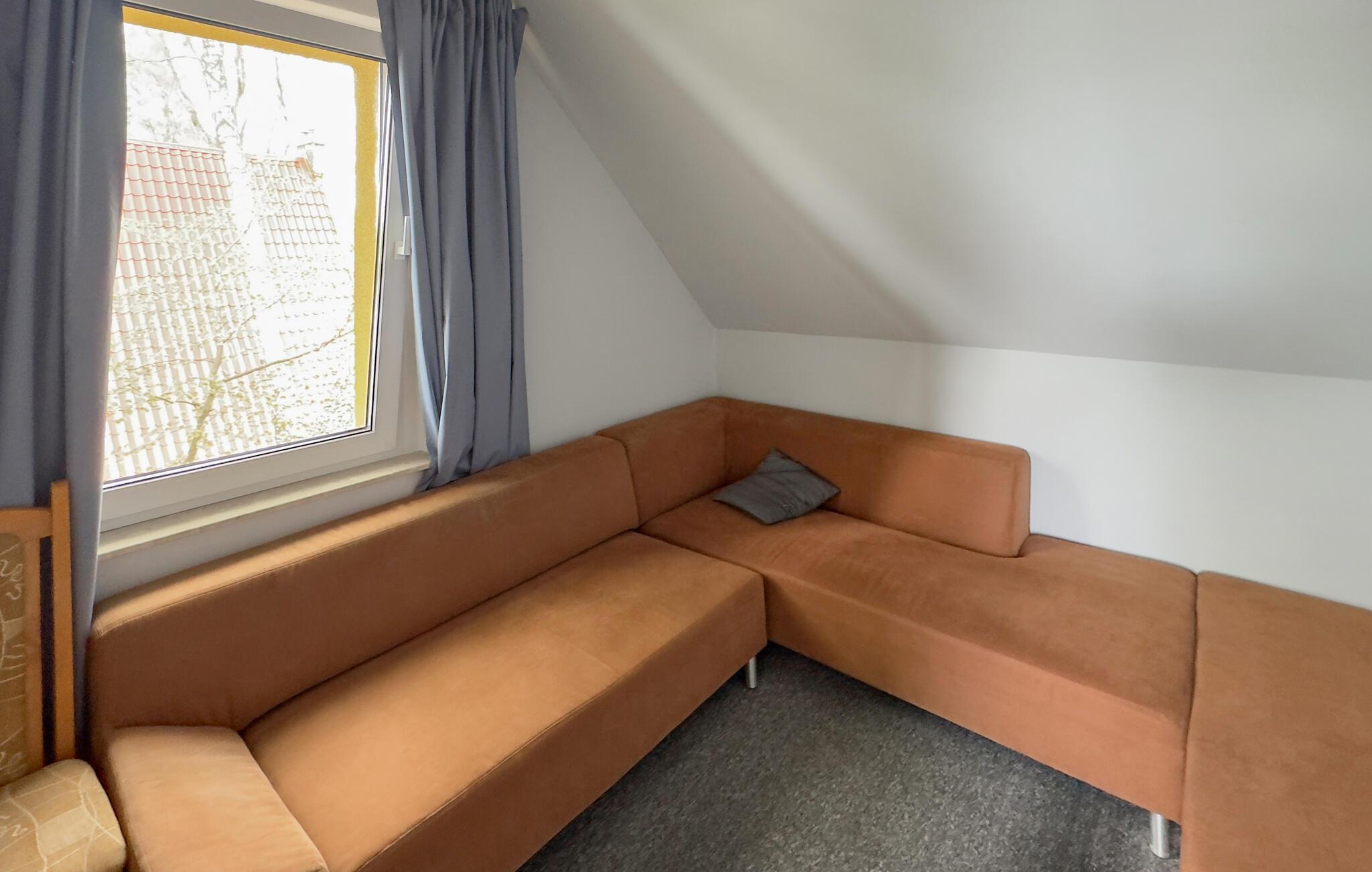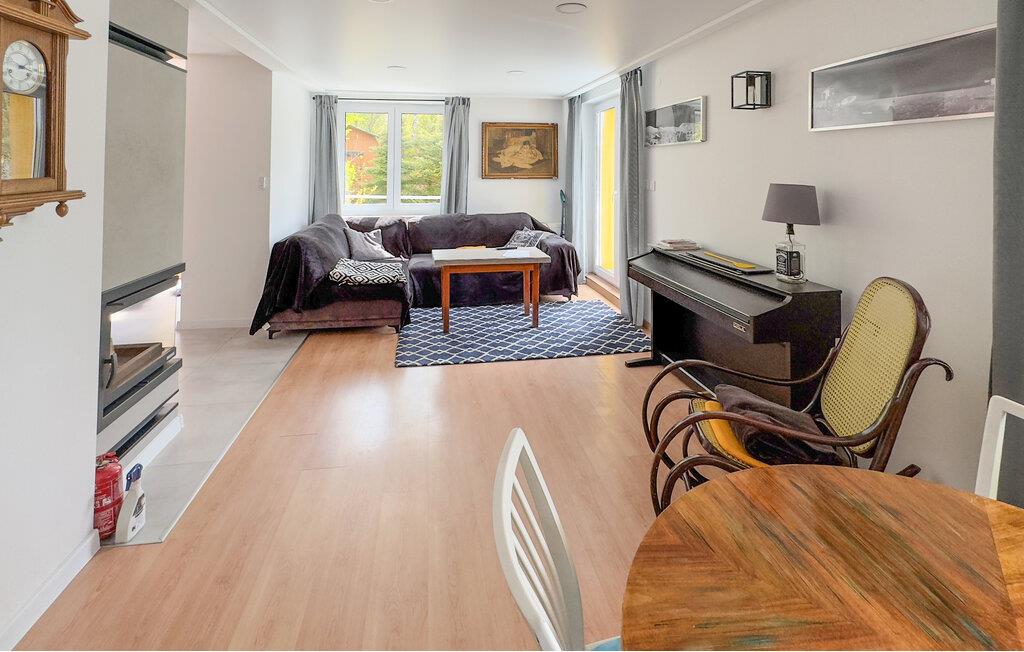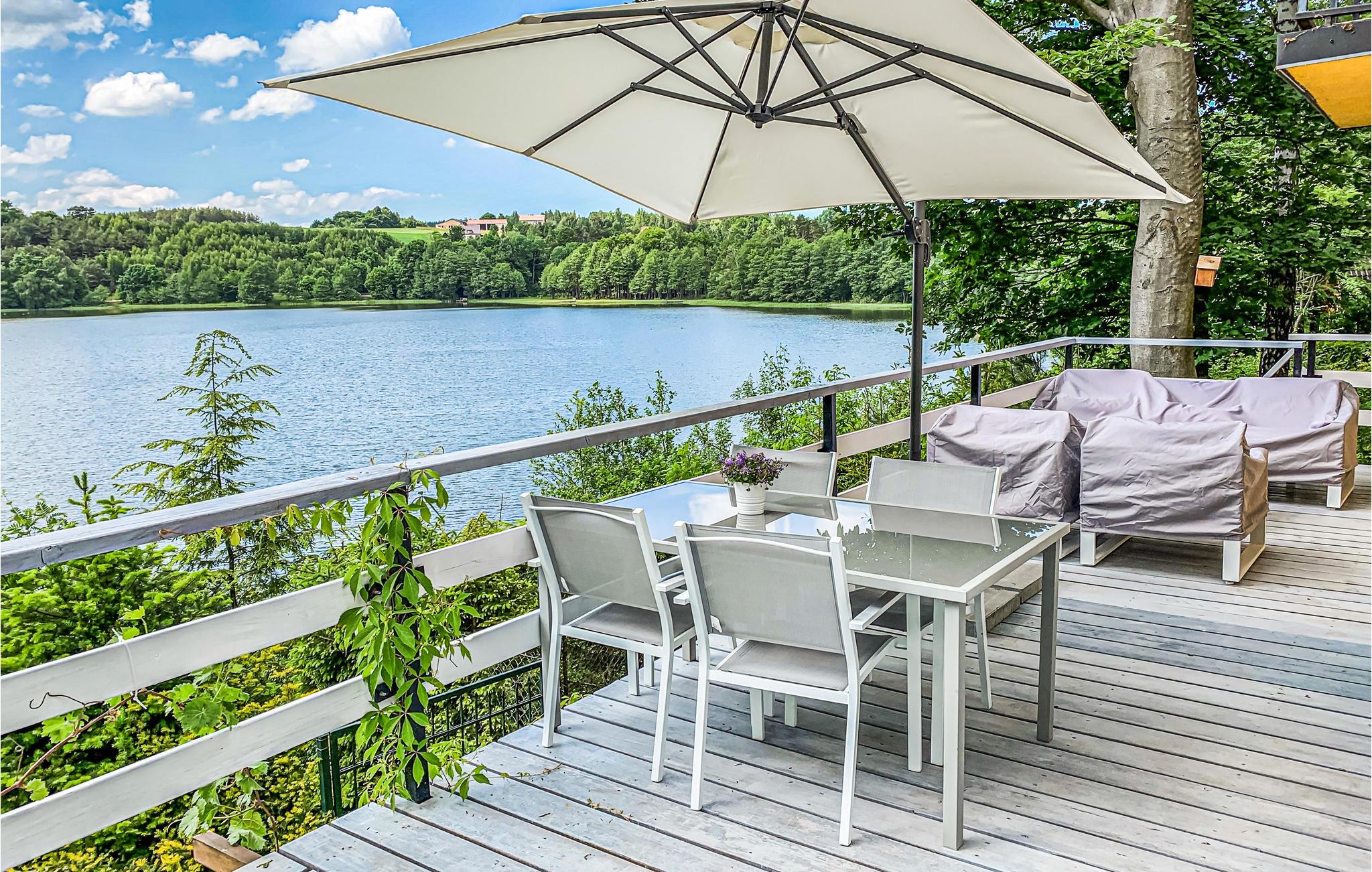 Dette skønne feriehus har en smuk placering godt en halv times kørsel fra Gdynia. Her kommer I nemlig til at have den mest vidunderlige udsigt til en sø fra terrassen og sofastuen.