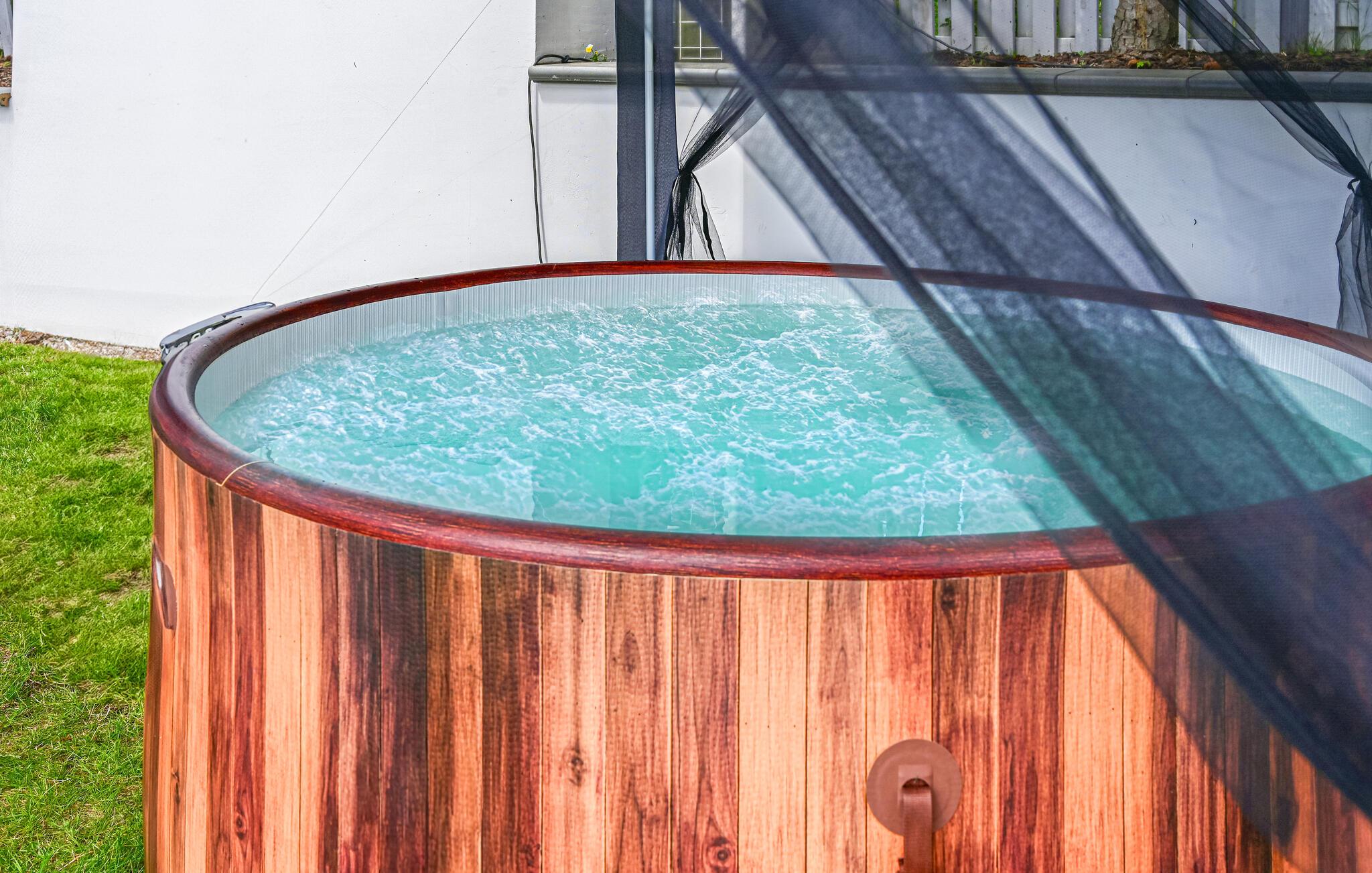 På den idylliske ø direkte ved den tyske grænse til Usedom finder I dette indbydende feriehus, som er praktisk indrettet men meget hyggeligt takket være de stemningsfulde trævægge- og lofter. Tag en dukkert i fællespoolen om morgenen og nyd jeres morgenmad på terrassen. I har både sandstrand og en sø tæt på, så her er bade- og fiskemulighederne rigtigt gode. I kan leje cykler lige ved huset, så I nemt kan udforske øen, som bl.a. byder på et roligt skovområde. Er I til golf, ligger der en golfbane 2 km fra huset.