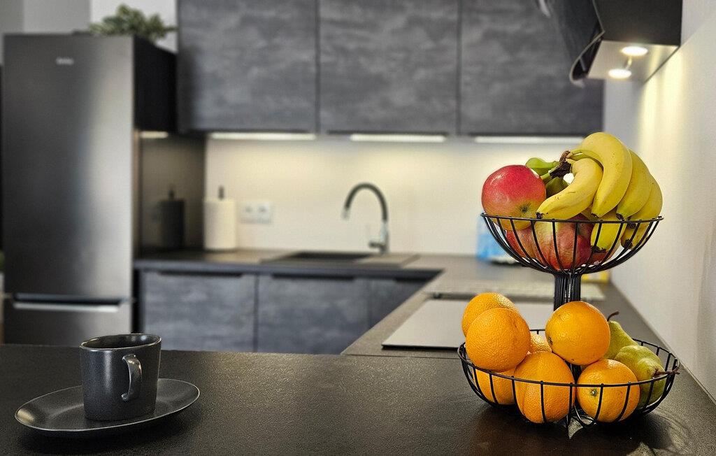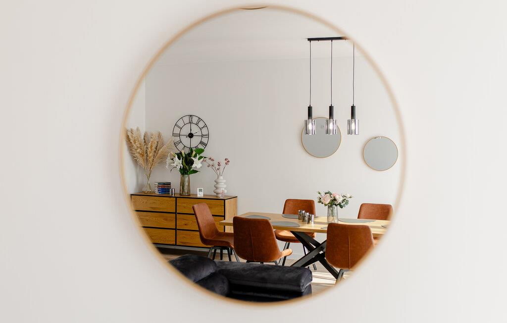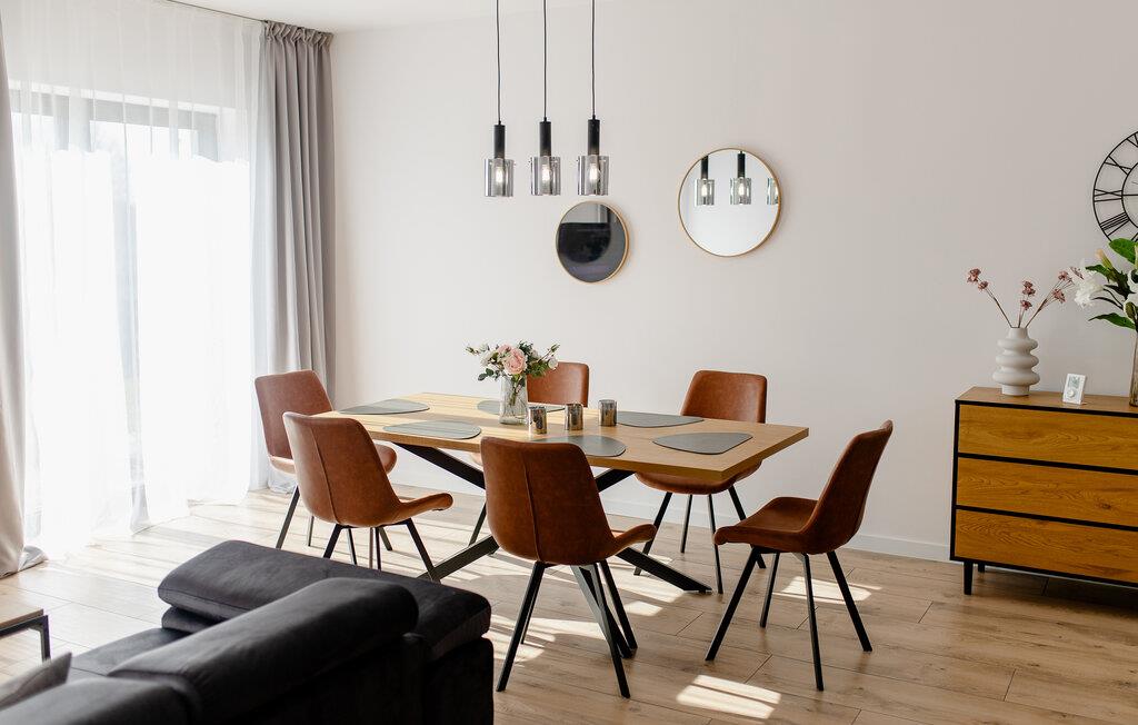 Træd ind i det lyse interiør og nyd det rene, indbydende design med masser af naturligt lys. Læn jer tilbage i den åbne stue og spisestue, der er møbleret med en komfortabel sofa, et fladskærms-tv og et rummeligt spisebord. Tilbered måltider i det moderne køkken, der er udstyret med apparater af høj kvalitet og rigelig bordplads. Lav mad sammen og tilbring kvalitetstid sammen. Om aftenen kan I nyde den rolige atmosfære, der skabes af de stilfulde møbler.