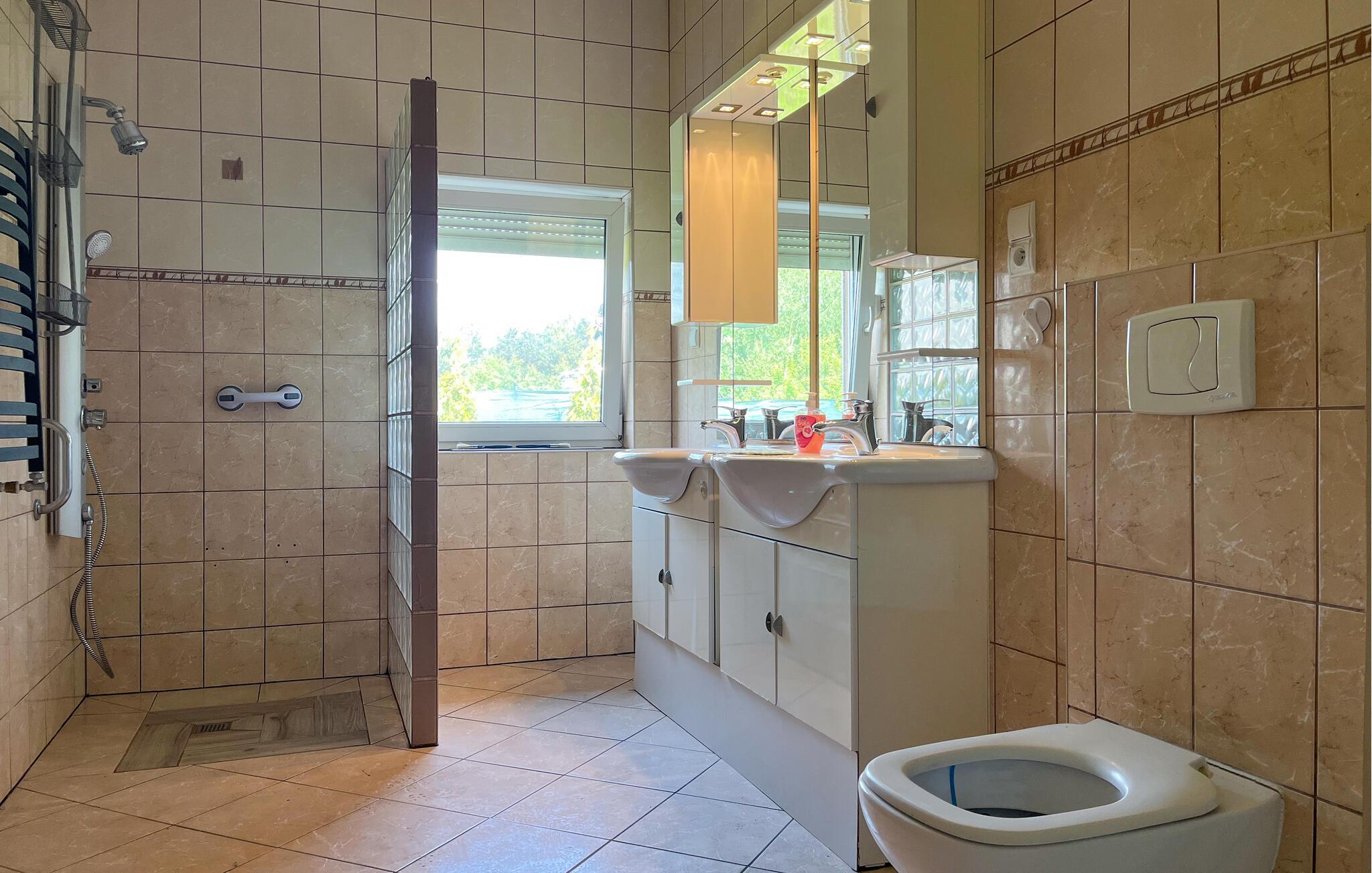 Glæd jer til en afslappende tid i smukke omgivelser i dette feriehus. Hvis I planlægger en ferie nær havet, der også inkluderer udendørsoplevelser, er dette velbeliggende og komfortable hus det rette valg. Det byder jer velkommen i kystens bagland og tilbyder med sine lyse værelser en smuk ramme for jeres afslapning. Efter en aktiv dag kan I finde jer til rette ved køkkenbordet, spise sammen med en smuk udsigt over naturen og reflektere over jeres oplevelser. Solbad på terrassen og hengiv jer til jeres yndlingsbog. Nyd lange sommeraftener udendørs, måske med forfriskende drinks og lækker grillmad. Kør til havet og nyd dejlige timer på stranden. Besøg det historiske fyrtårn og nyd den storslåede udsigt over havet. Lad jer fortrylle af de små caféer, butikker og den livlige havneatmosfære i Kolobrzegs charmerende bymidte. Bymuseet, den imponerende Mariakirke eller en tur på lystbåden tilbyder en række forskellige oplevelser.