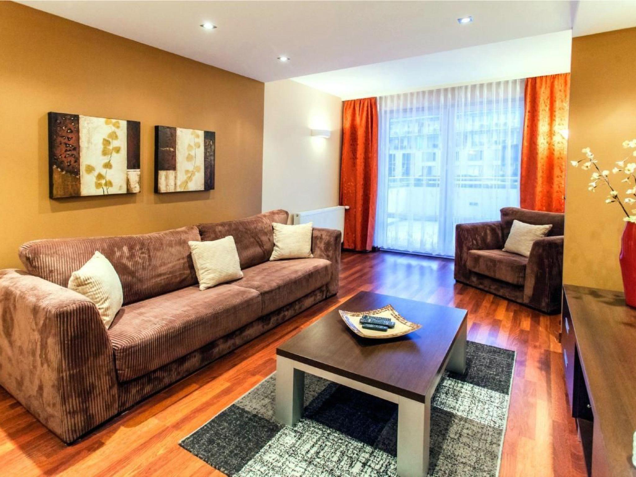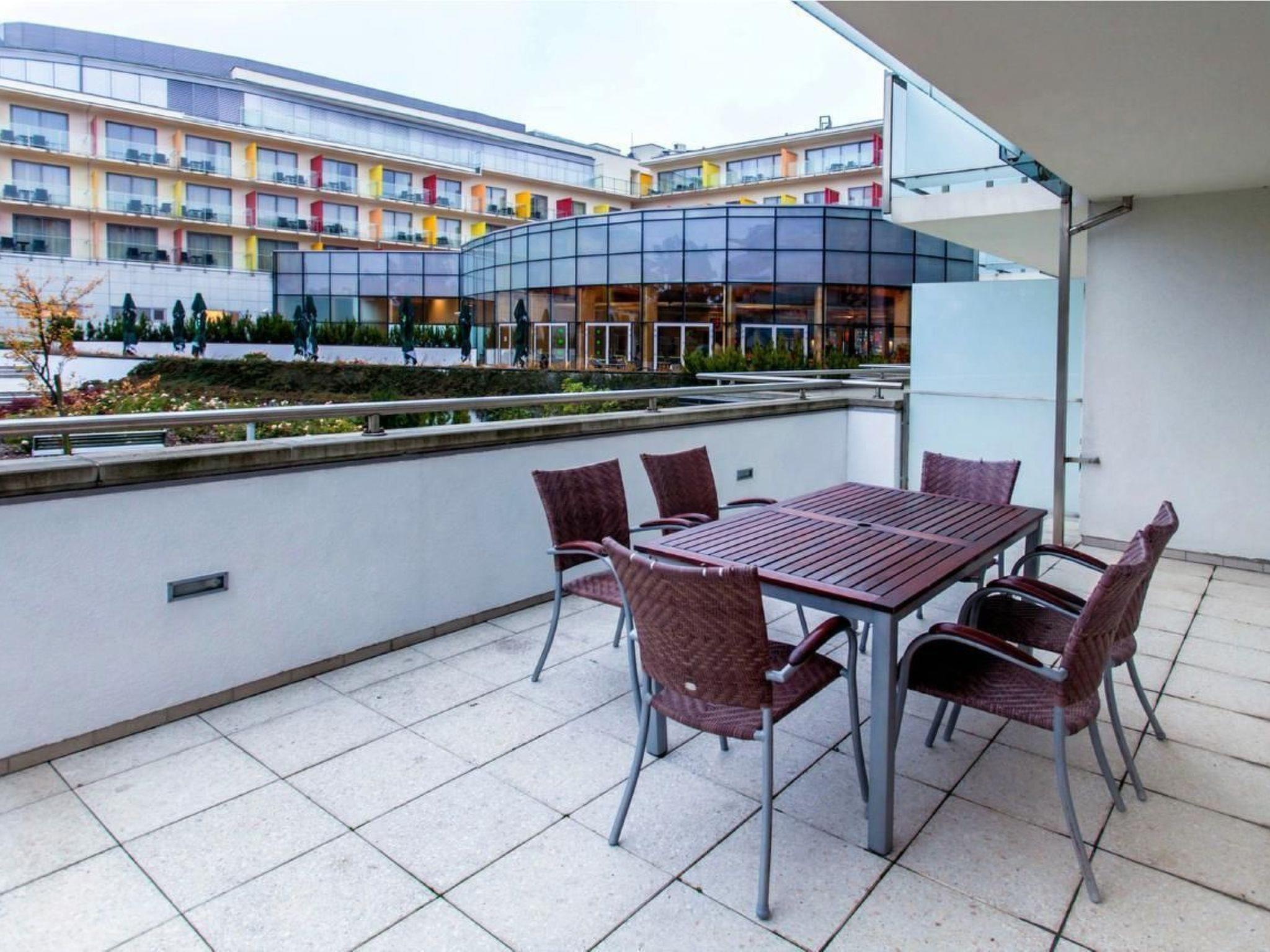 Luxurious flat located in the complex AQUARIUS SPA***** at a distance of less than 300m to the sea, in the immediate vicinity of the Seaside Park and Amphitheatre, in the spa district. Modern architecture and high-class finishing materials will provide you with extraordinary comfort, functionality and, as a result, a comfortable rest.