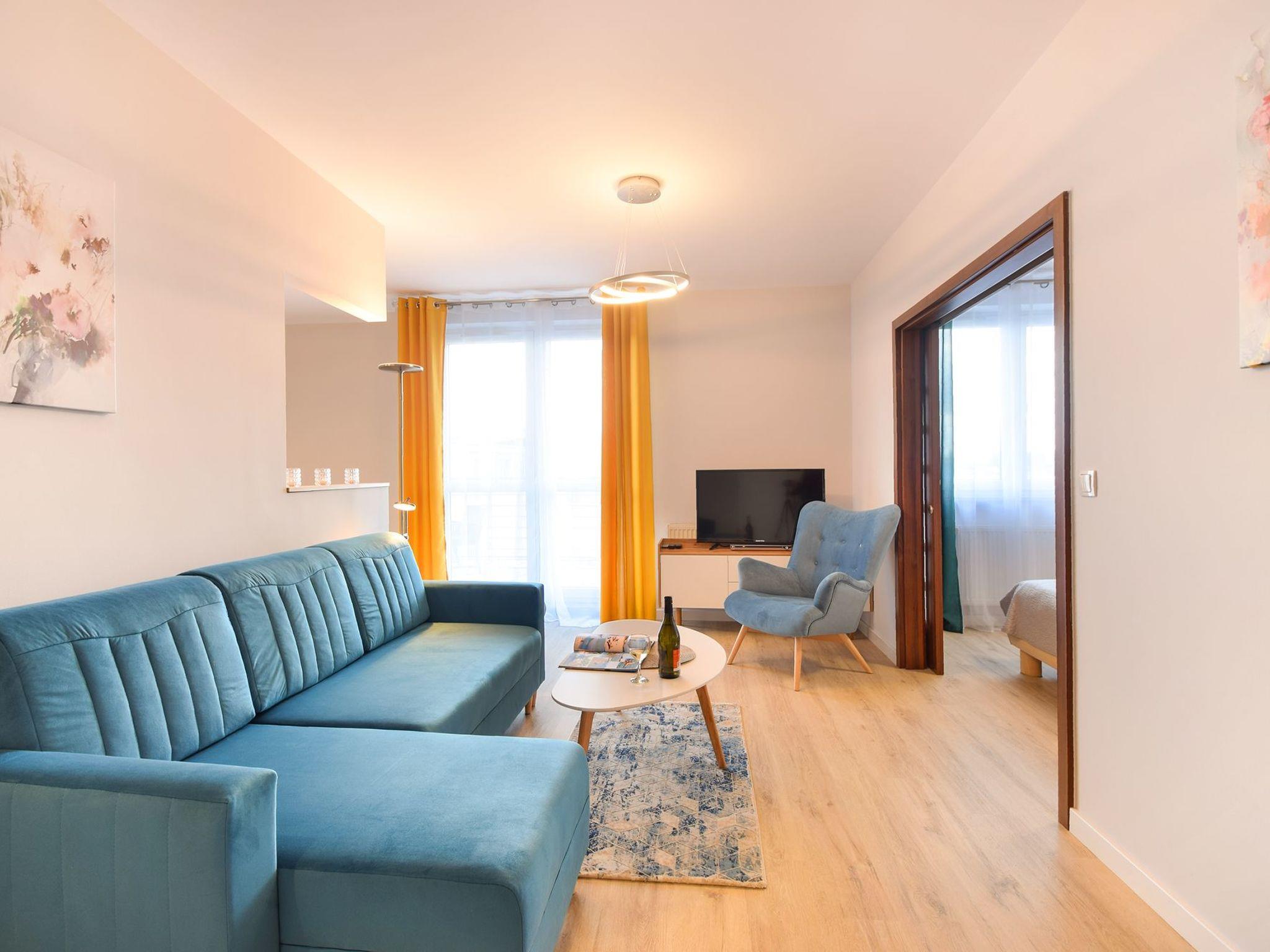 KASPROWICZA apartments are located in the spa city of Kolobrzeg, in the immediate vicinity of Seaside Park, about 500 meters from the sea. Our apartments are located in the new, fourth-storey building with 2 lifts and has a scenic terrace-seating on the roof, where in summer the sun beds can be nice to hang out. Active leisure provides close proximity to the base recreation - surgical spa, tennis courts, miniature golf, playground to play basketball, volleyball, a big SPA & Wellness base, swimming pools, bicycle paths, etc. Nearby is the chapel where Masses are celebrated. You can leave the car in front of the apartment (less seats) and one of the three guarded parking lots located within 100-300m from the apartment building.Short descriptionOther : Non-smoking houseShort description 1Number of kitchens : 1Other rooms : little room for luggageLiving room 1Other living room features : Living room, where there is a large double sofa, easy chair, stool, LCD TV, satellite TV, DVD player and intercom opening exterior doors;Bedroom 1Other bedroom furniture : Bedroom with large double bed (160x200cm) and a large wardrobe-dressing-room for clothes, and her beach equipment, iron and ironing board and folding laundry dryer. The bed is a CD tuner with alarm;Kitchen 1Other kitchen equipment : Fully equipped kitchenette with ceramic hob, fridge, microwave, coffee maker, toaster, electric kettle, cutlery, crockery, pots and pans, cutlery, etc. The kitchen has a table and chair set;SurroundingNearby sports facilities : Bike tours, Diving, Fishing, Football area, Riding possibilities, Sailing, Sport center, Tennis