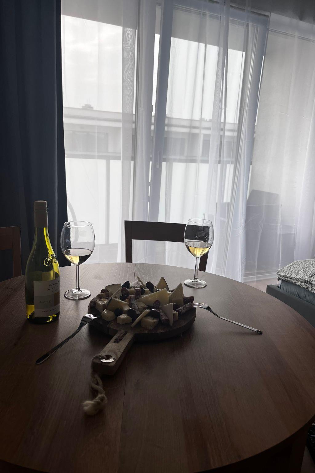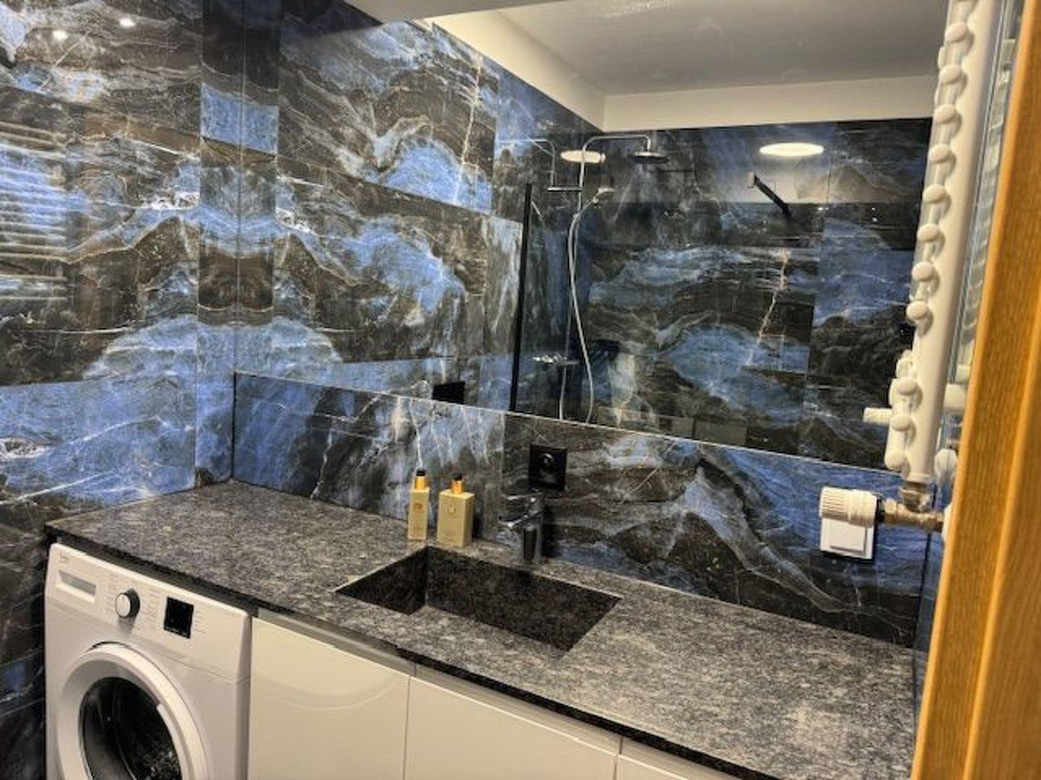 The interior of the flat has been designed with maximum comfort and functionality in mind. At your disposal is a well-equipped kitchenette, which allows you to prepare your favourite dishes. All necessary appliances such as a two-burner cooker, microwave, coffee maker, fridge, wine cooler, dishwasher and kettle, as well as the necessary cutlery, plates and pots are provided. Fresh linen and soft towels complete the offer, as well as your own washing machine, which is sure to make longer stays easier.