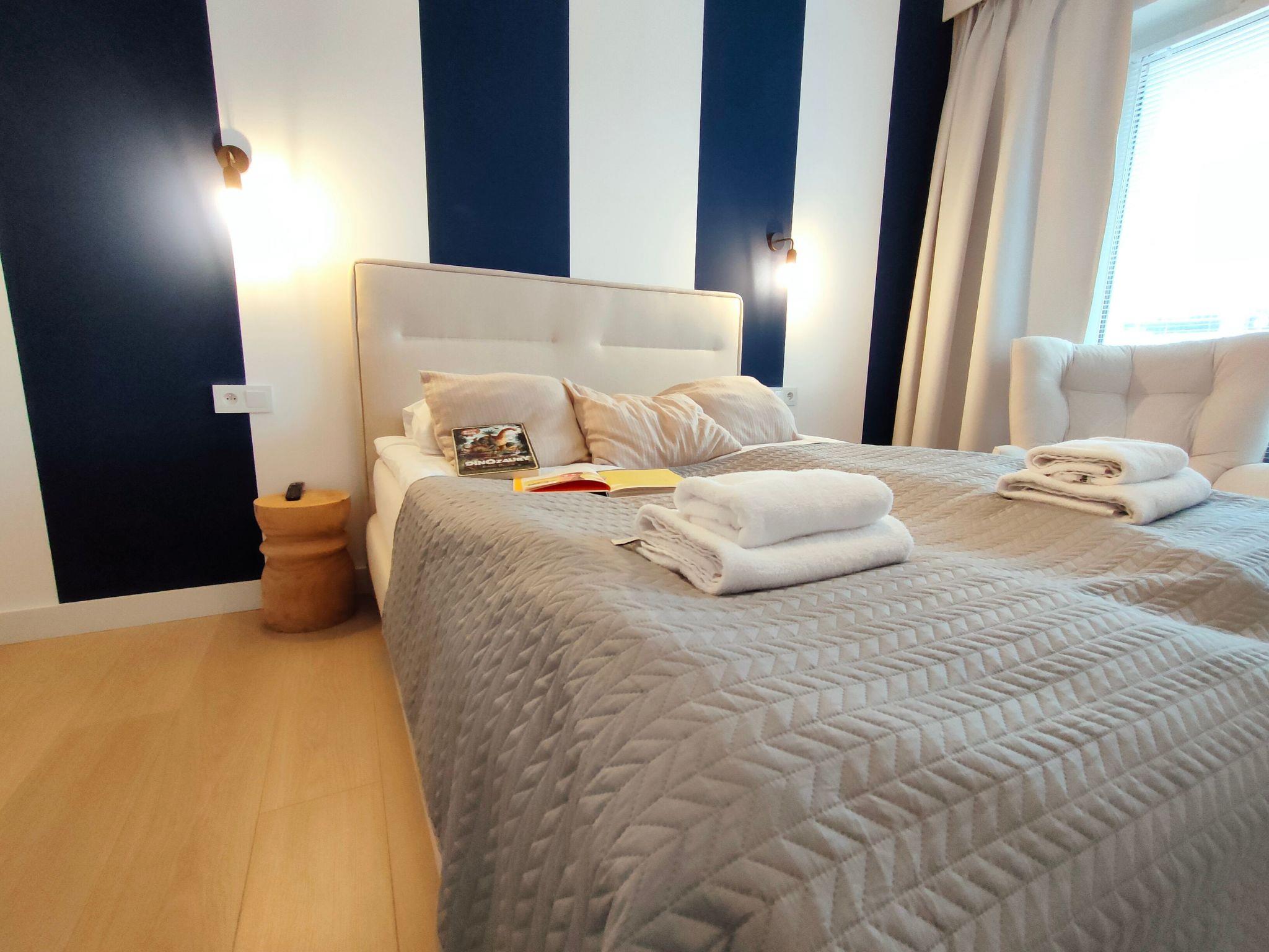 Our two-bedroom flat offers first-class accommodation comfort, ideal for families with children. It consists of a fully furnished kitchenette, an elegantly decorated bathroom, a bedroom with a double bed and a spacious living room with a sofa bed. For maximum guest convenience, each room is equipped with a SMART TV and we provide complimentary high-speed wireless internet access. In addition, our guests can make use of a private parking space located directly in front of the flat.