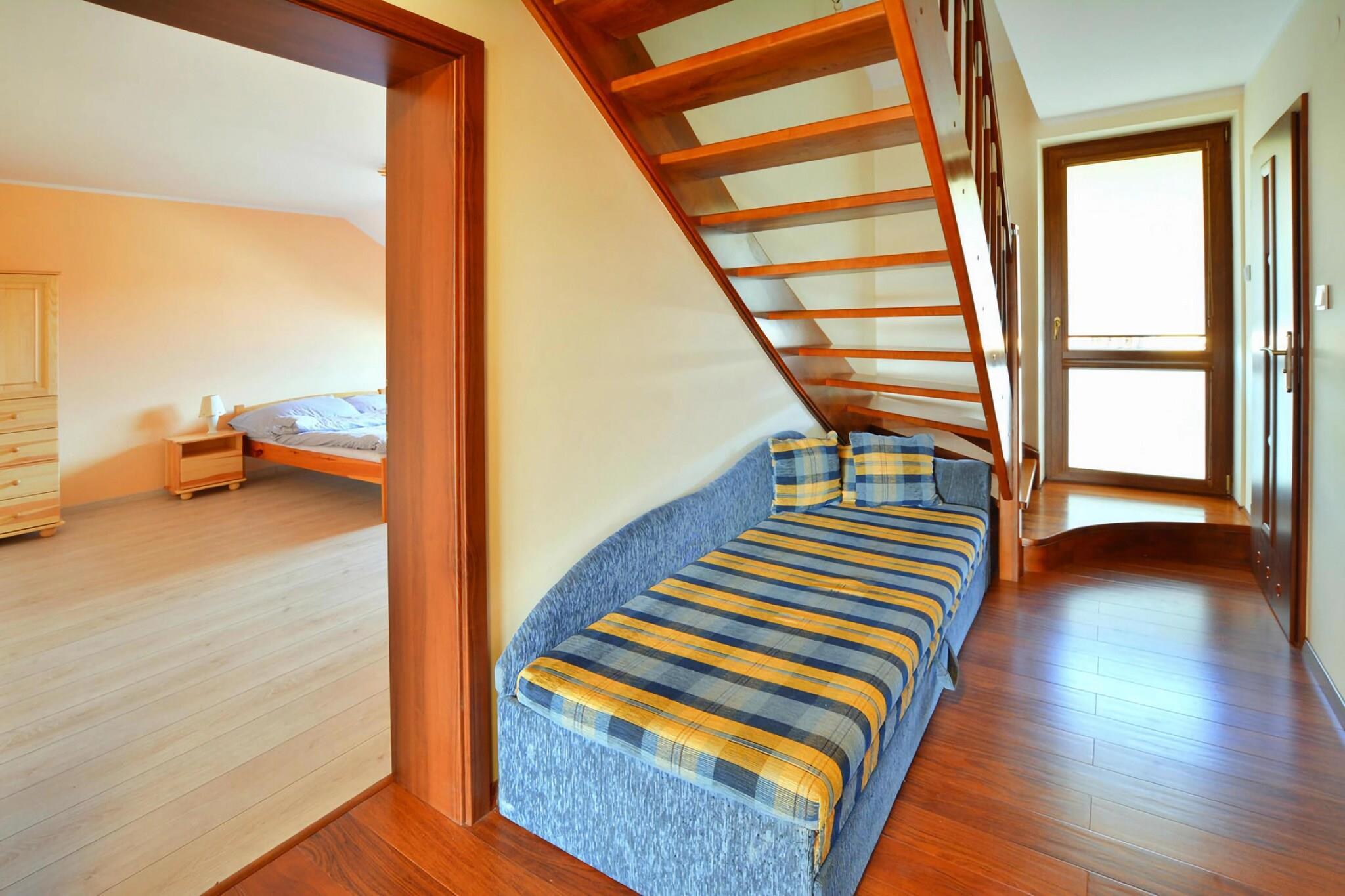 Et rummeligt XXL rækkehus med moderne udstyr, i et roligt område, to kilometer fra stranden ved havet. Resortets centrum med butikker, restauranter og barer ligger 2,5 km væk. Feriehuset byder på plads nok til ni personer fordelt på to etager. Haven med stor terrasse og grill er et ideelt sted at tilbringe sommeraftener udendørs. I stueetagen er der en rummelig stue med TV og et stort bord. Det veludstyrede køkken er delvist forbundet med stuen. Der er også et badeværelse med badekar i stueetagen. På første sal er der 3 separate soveværelser og et andet badeværelse (med bruser). Udstyret inkluderer en vaskemaskine. Prisen for opholdet inkluderer: sengelinned, håndklæder, el- og vandforbrug, varme, slutrengøring, internet, parkering, barneseng, høj stol. Lejligheden er beliggende på et sådant sted, at du bekvemt kan komme til både den mere stille strand på den vestlige bred af floden (Parseta), samt den mere støjende strand på den østlige bred af floden, hvor der er flere attraktioner (vand sport osv.). Spaens største attraktion er den brede strand. Derudover er der mange vandreruter i badeparken, langs strandpromenaden, på den historiske mole og i den gamle bydel. Det er værd at besøge det lokale fyrtårn, oceanariet, havnen og katedralen. Attraktioner i området: for familier med børn anbefaler vi at besøge forlystelsesparken Pomerania Fun Park. Det er en helårspark beliggende i landsbyen Dygowo (ca. 15 km fra Kolobrzeg). Det byder på adskillige karruseller og trampoliner. Der er en vikingelandsby, en minizoo og mange andre attraktioner. I Kolobrzeg er det også værd at besøge en indisk landsby, hvor du kan lære om regionerne med indfødte kulturer i Nordamerika.