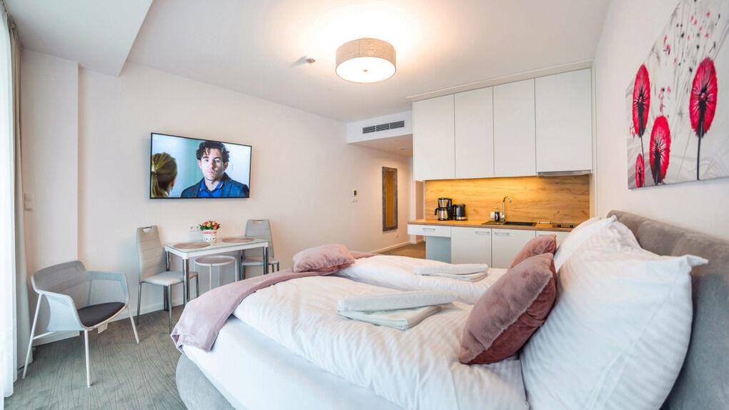 • Die Apartments sind mit Bettwäsche und Handtüchern ausgestattet.