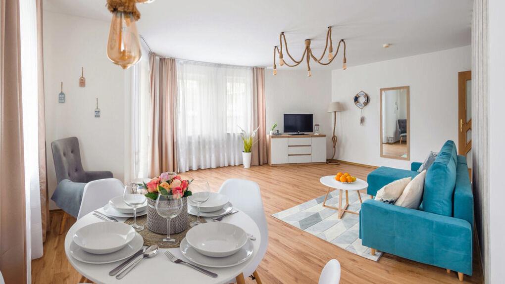 • Haustiere sind in der ausgewählten Wohnung erlaubt. Die Kosten für den Aufenthalt mit einem Haustier betragen 40 PLN pro Tag.