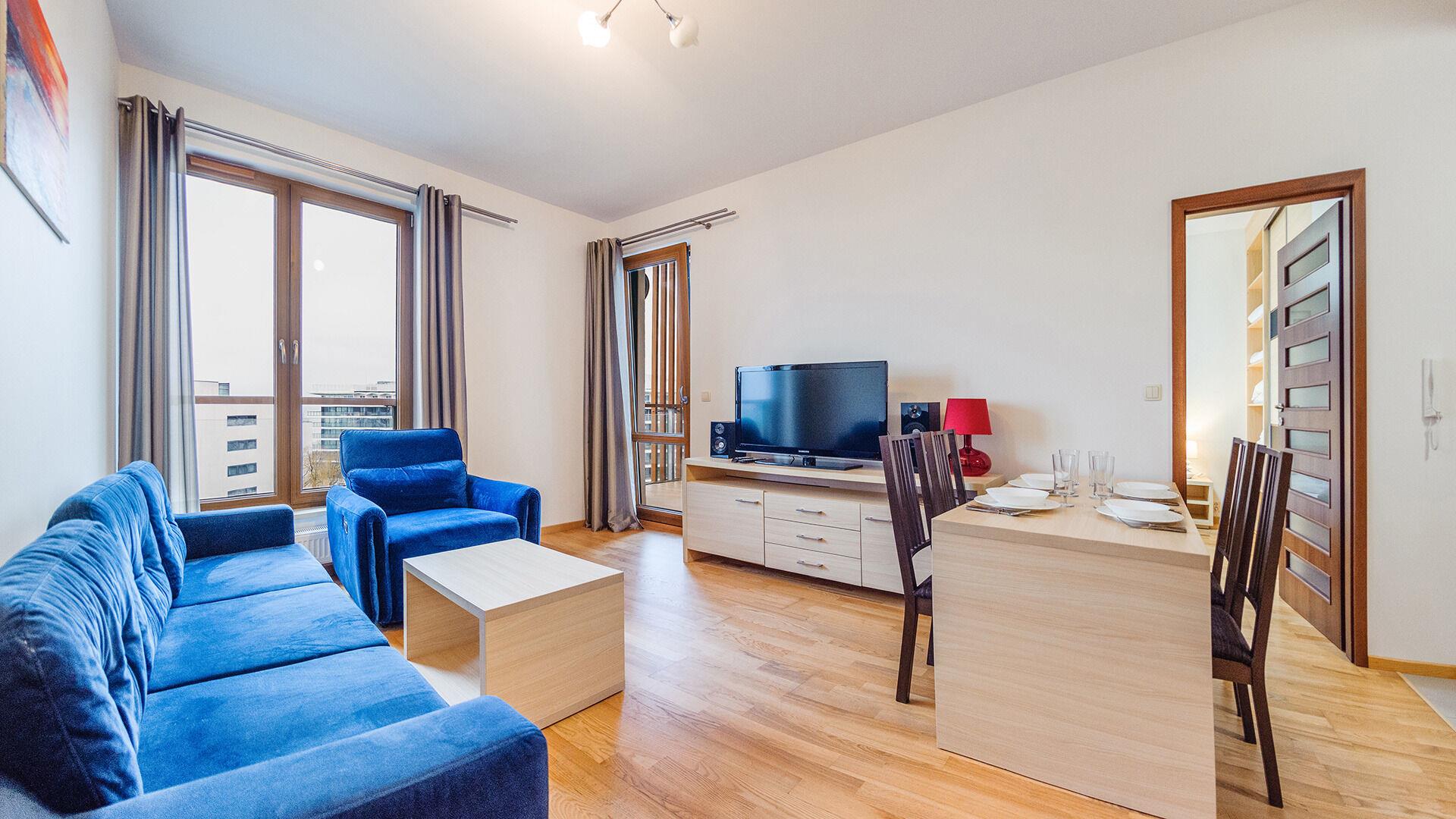 • Haustiere sind in der ausgewählten Wohnung erlaubt. Die Kosten für den Aufenthalt mit einem Haustier betragen 40 PLN pro Tag.