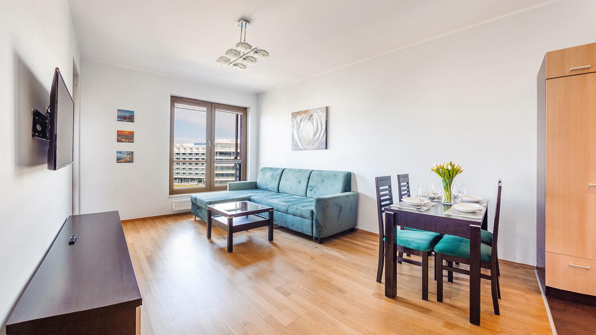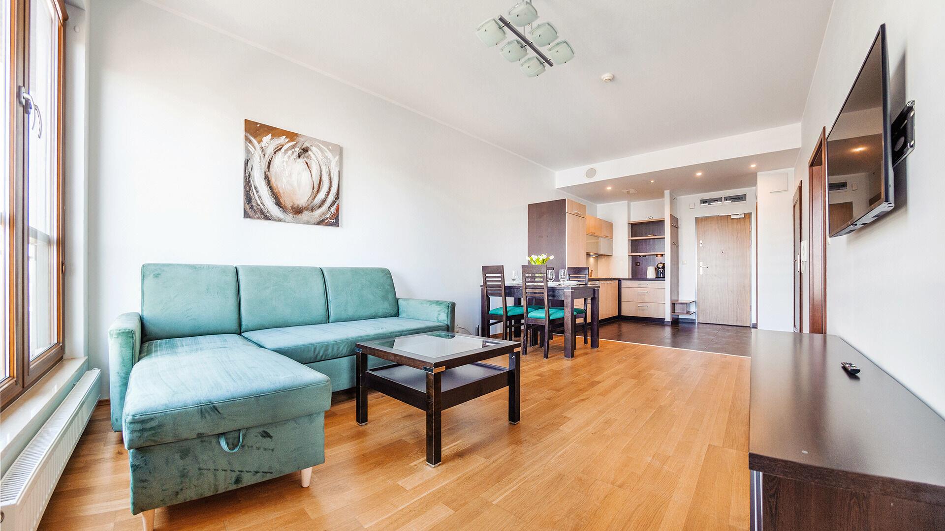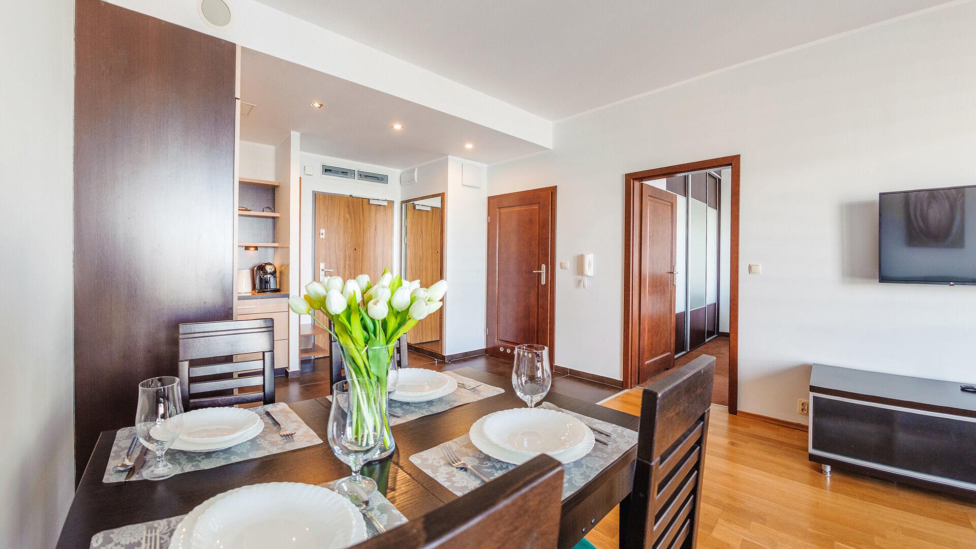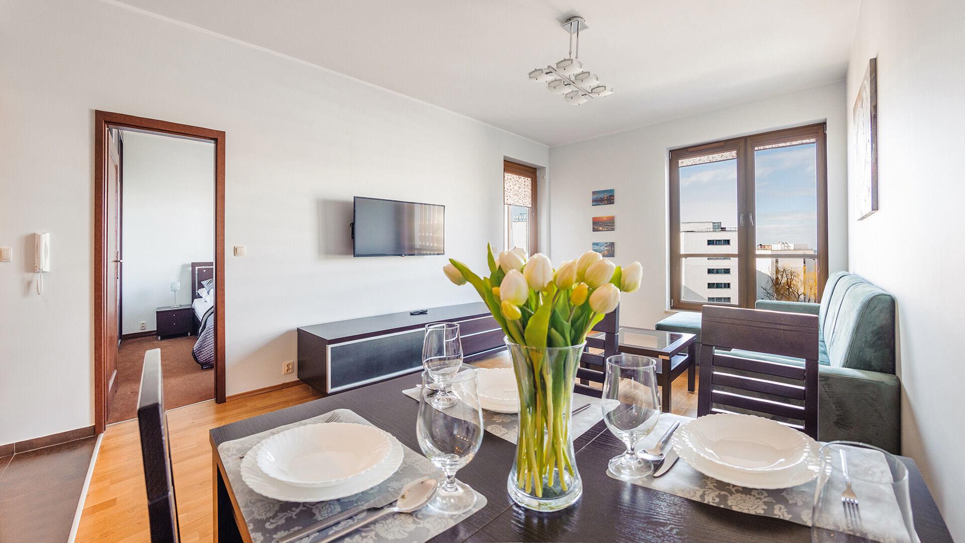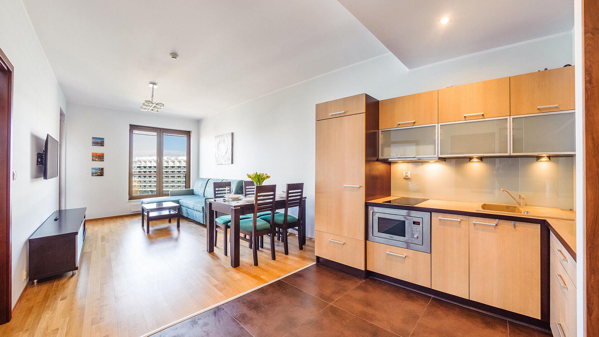 • Haustiere sind in der ausgewählten Wohnung erlaubt. Die Kosten für den Aufenthalt mit einem Haustier betragen 40 PLN pro Tag.