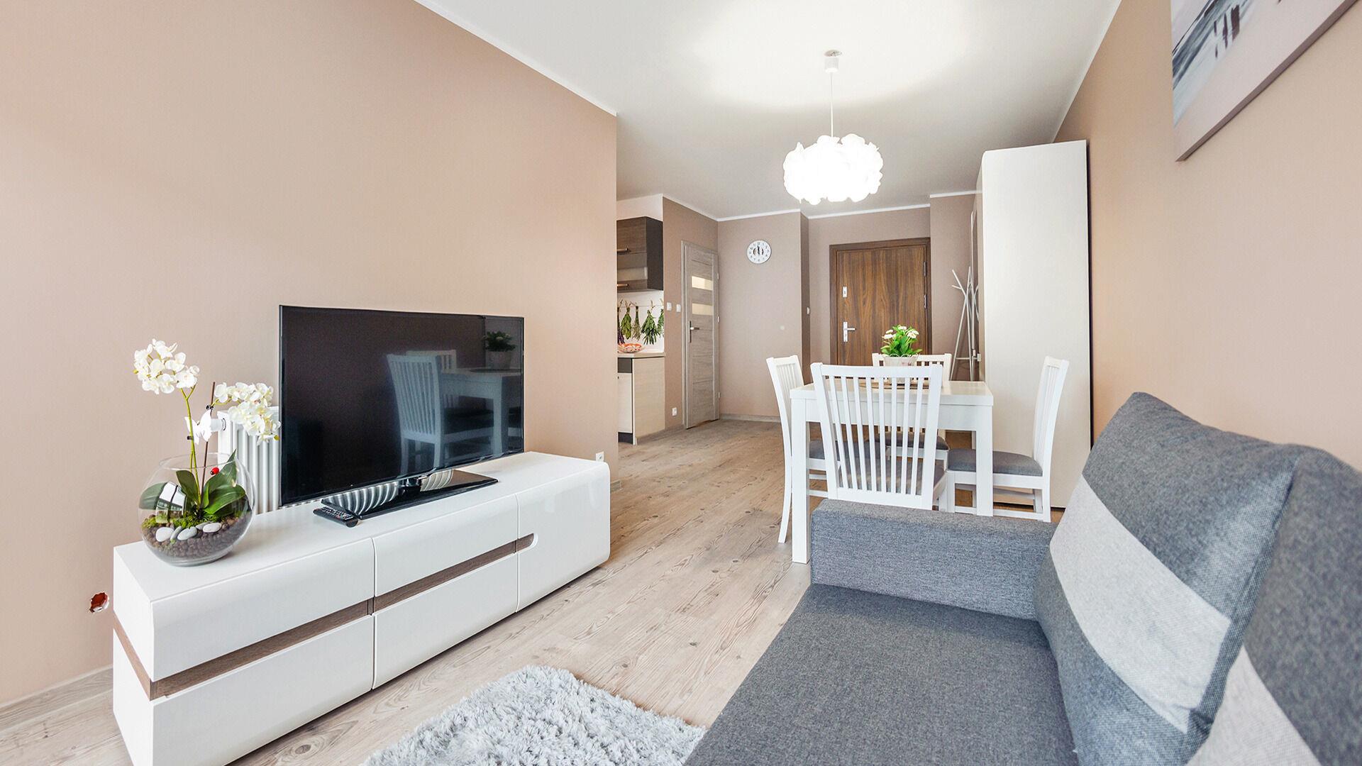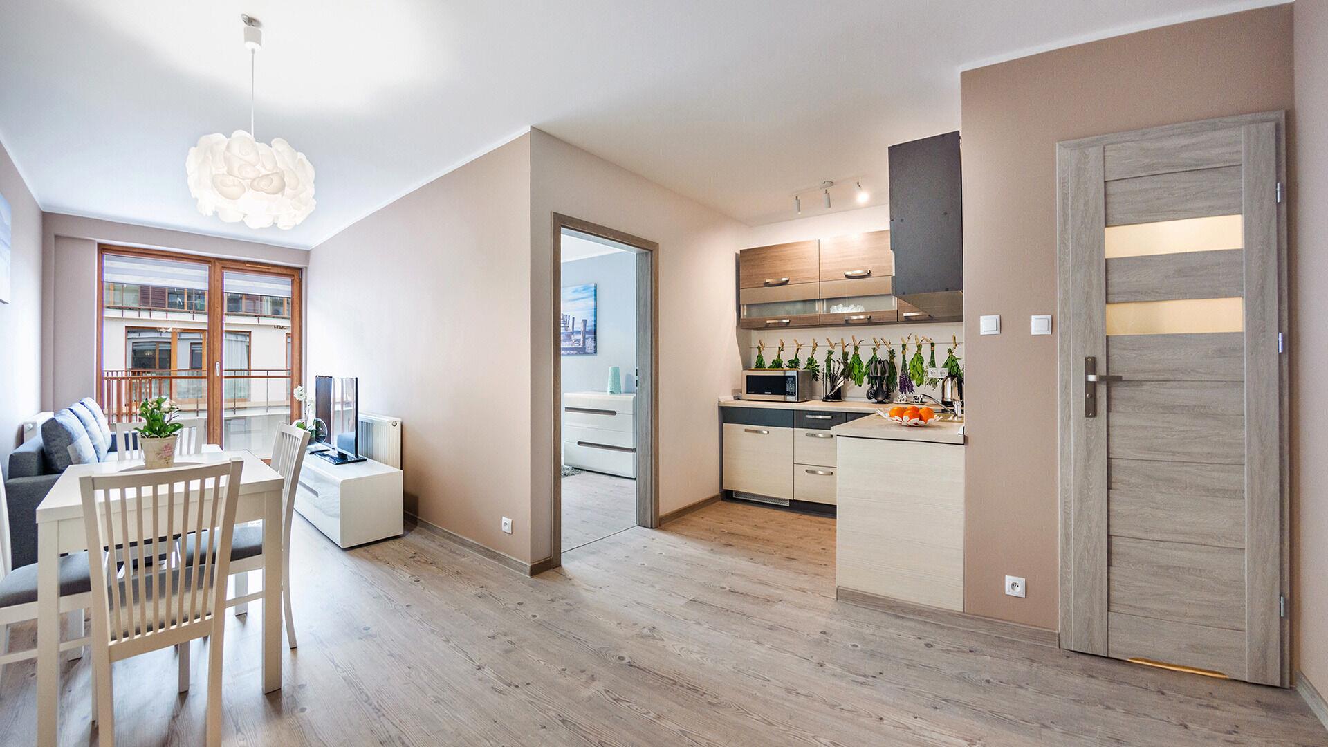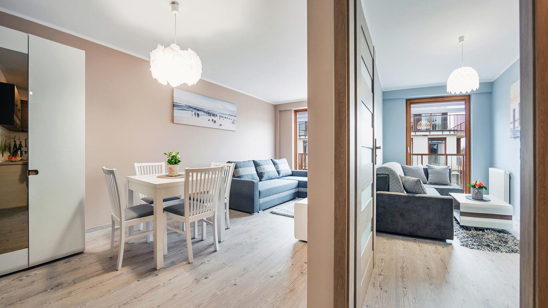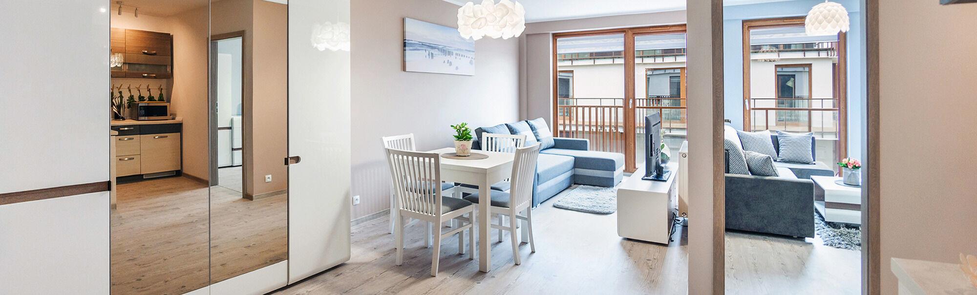 • Haustiere sind in der ausgewählten Wohnung erlaubt. Die Kosten für den Aufenthalt mit einem Haustier betragen 40 PLN pro Tag.