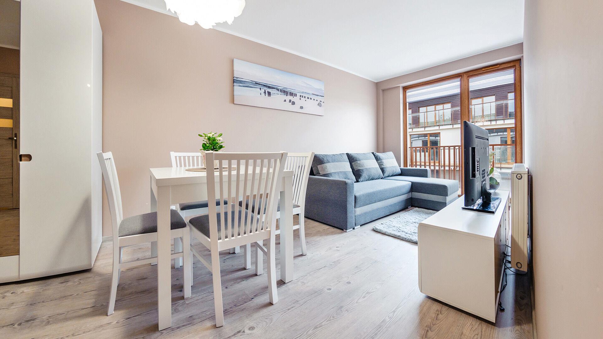 Die Apartments im Resorts Kolobrzeg liegen im ruhigen, westlichen Teil der Stadt, umgeben vom NATURA-2000-Park und nur wenige Minuten vom breiten Weststrand sowie einem Hundestrand entfernt. Die Lage bietet saubere Luft, direkten Kontakt zur Natur und Zugang zu Rad- und Spazierwegen. Die Apartments sind hochwertig ausgestattet und verfügen über voll ausgestattete Küchenzeilen sowie große Terrassen. Auf dem Gelände stehen nummerierte Außenparkplätze und Tiefgaragenplätze gegen Aufpreis zur Verfügung, zudem gibt es einen öffentlichen, kostenpflichtigen Parkplatz vor dem Gebäude. Gästen stehen ein täglich geöffneter Pool sowie eine Sauna zur Verfügung. Kolobrzeg bietet das ganze Jahr über zahlreiche Freizeit- und Kulturangebote sowie eine vielfältige Gastronomie.