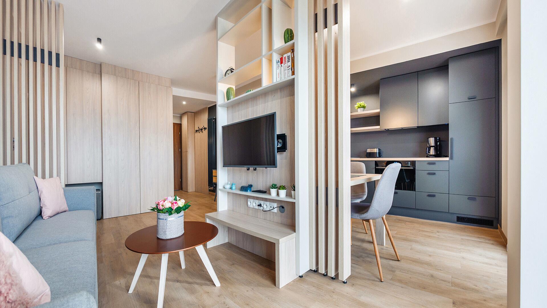 • Haustiere sind in der ausgewählten Wohnung erlaubt. Die Kosten für den Aufenthalt mit einem Haustier betragen 40 PLN pro Tag.