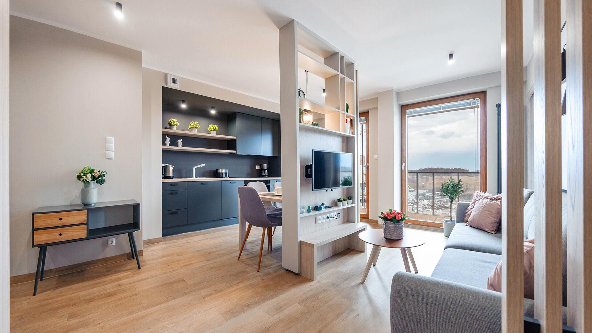 Die Apartments im Resorts Kolobrzeg liegen im ruhigen, westlichen Teil der Stadt, umgeben vom NATURA-2000-Park und nur wenige Minuten vom breiten Weststrand sowie einem Hundestrand entfernt. Die Lage bietet saubere Luft, direkten Kontakt zur Natur und Zugang zu Rad- und Spazierwegen. Die Apartments sind hochwertig ausgestattet und verfügen über voll ausgestattete Küchenzeilen sowie große Terrassen. Auf dem Gelände stehen nummerierte Außenparkplätze und Tiefgaragenplätze gegen Aufpreis zur Verfügung, zudem gibt es einen öffentlichen, kostenpflichtigen Parkplatz vor dem Gebäude. Gästen stehen ein täglich geöffneter Pool sowie eine Sauna zur Verfügung. Kolobrzeg bietet das ganze Jahr über zahlreiche Freizeit- und Kulturangebote sowie eine vielfältige Gastronomie.