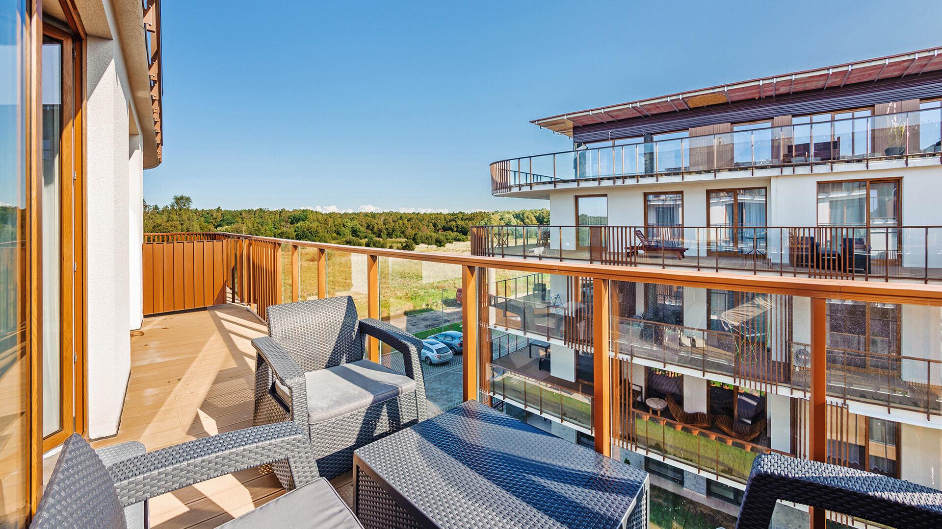 Die Apartments im Objekt Resorts Kolobrzeg befinden sich im westlichen Teil von Kolobrzeg, abseits des städtischen Trubels, umgeben vom Grün des NATURA-2000-Parks. Diese Lage garantiert saubere Luft, malerische Ausblicke und direkten Kontakt zur Natur. Die Plazowa-Straße mit ihren breiten Gehwegen und Radwegen ist ein Teil der R10-Fahrradroute. Ein fünfminütiger Spaziergang über einen direkten Zugang zum Meer reicht aus, um den breiten, sandigen „Weststrand” zu erreichen; ganz in der Nähe befindet sich auch ein Hundestrand. Alle Apartments sind hochwertig ausgestattet und verfügen über funktionale, voll ausgestattete Küchenzeilen sowie geräumige Terrassen mit Blick auf den Innenhof oder das Grün des NATURA-2000-Parks. Vor dem Gebäude gibt es einen öffentlichen, kostenpflichtigen Stadtparkplatz (begrenzte Anzahl an Stellplätzen). Auf dem Gelände stehen ein nummerierter Außenparkplatz sowie Parkplätze in der Tiefgarage zur Verfügung, die den meisten Apartments zugeordnet sind und gegen Aufpreis genutzt werden können. Im Objekt befindet sich ein Schwimmbad, das täglich von 10:00 bis 21:00 Uhr geöffnet ist, sowie eine Sauna, die täglich von 16:00 bis 21:00 Uhr geöffnet ist. Der Pool befindet sich im Gebäude A; aus Gebäude B gibt es keinen direkten Zugang zu Gebäude A.