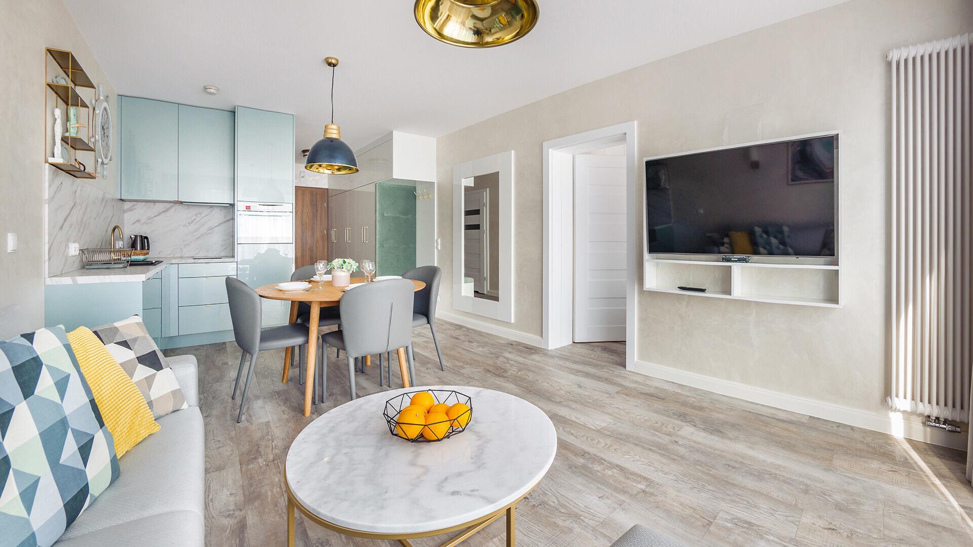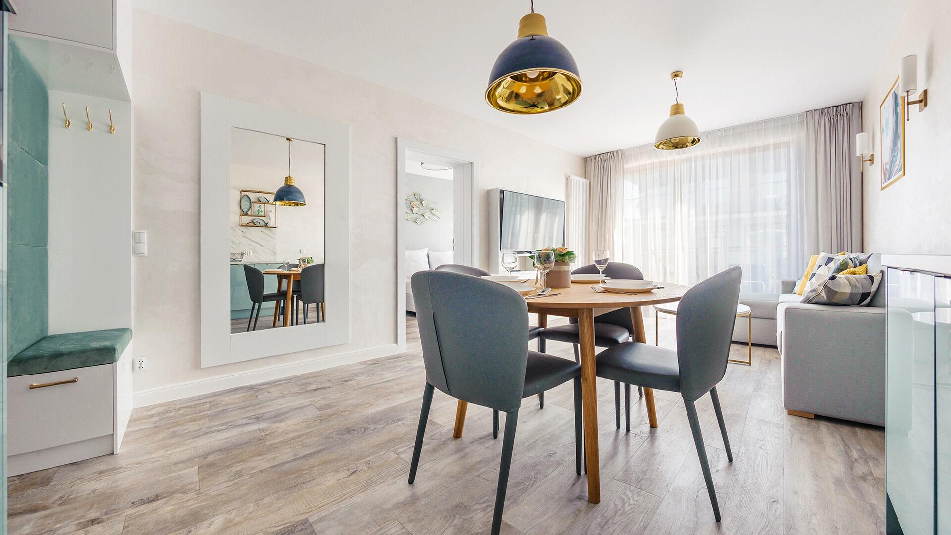 Die Apartments im Resorts Kolobrzeg liegen im ruhigen, westlichen Teil der Stadt, umgeben vom NATURA-2000-Park und nur wenige Minuten vom breiten Weststrand sowie einem Hundestrand entfernt. Die Lage bietet saubere Luft, direkten Kontakt zur Natur und Zugang zu Rad- und Spazierwegen. Die Apartments sind hochwertig ausgestattet und verfügen über voll ausgestattete Küchenzeilen sowie große Terrassen. Auf dem Gelände stehen nummerierte Außenparkplätze und Tiefgaragenplätze gegen Aufpreis zur Verfügung, zudem gibt es einen öffentlichen, kostenpflichtigen Parkplatz vor dem Gebäude. Gästen stehen ein täglich geöffneter Pool sowie eine Sauna zur Verfügung. Kolobrzeg bietet das ganze Jahr über zahlreiche Freizeit- und Kulturangebote sowie eine vielfältige Gastronomie.