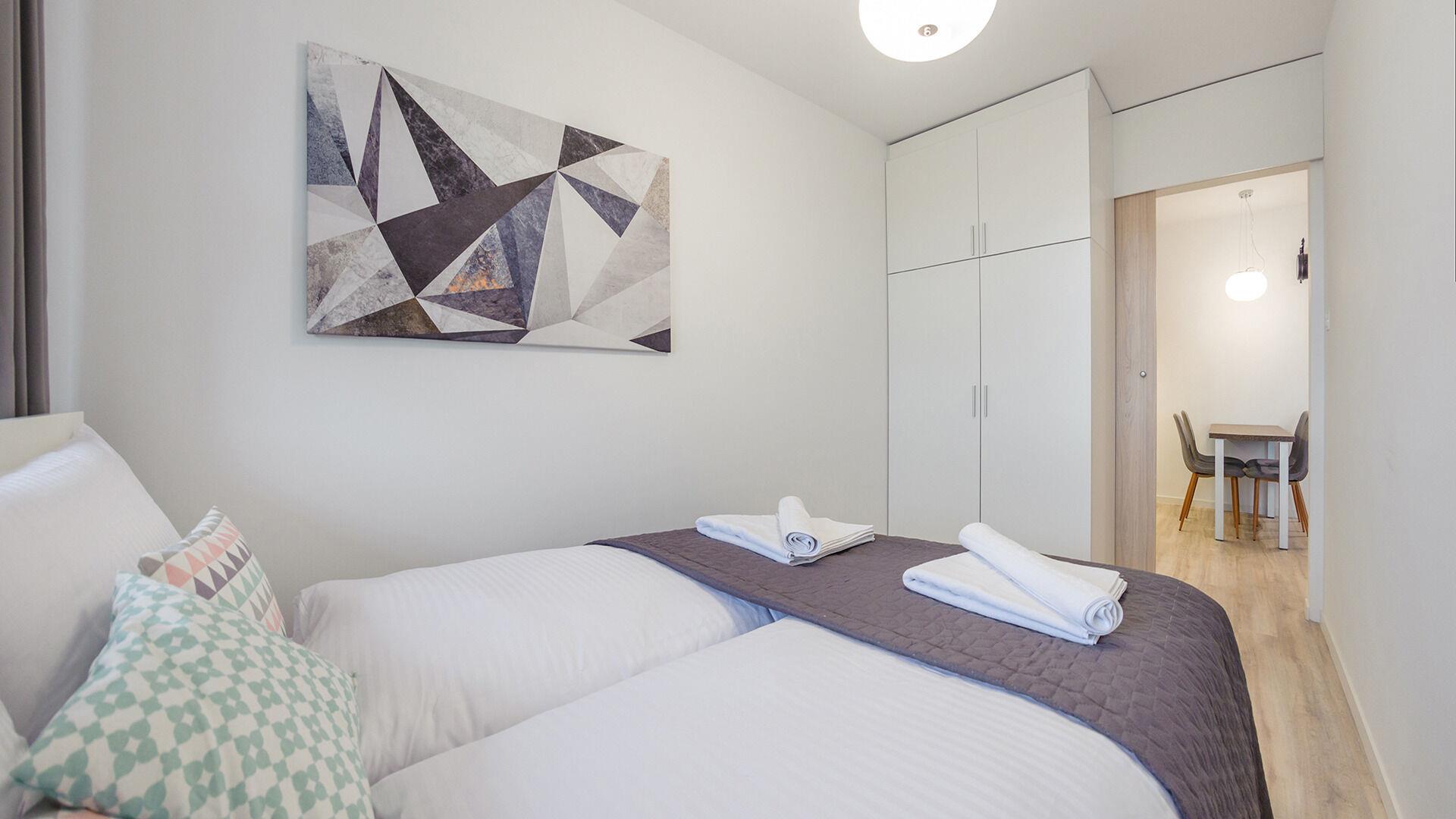 • Haustiere sind in der ausgewählten Wohnung erlaubt. Die Kosten für den Aufenthalt mit einem Haustier betragen 40 PLN pro Tag.